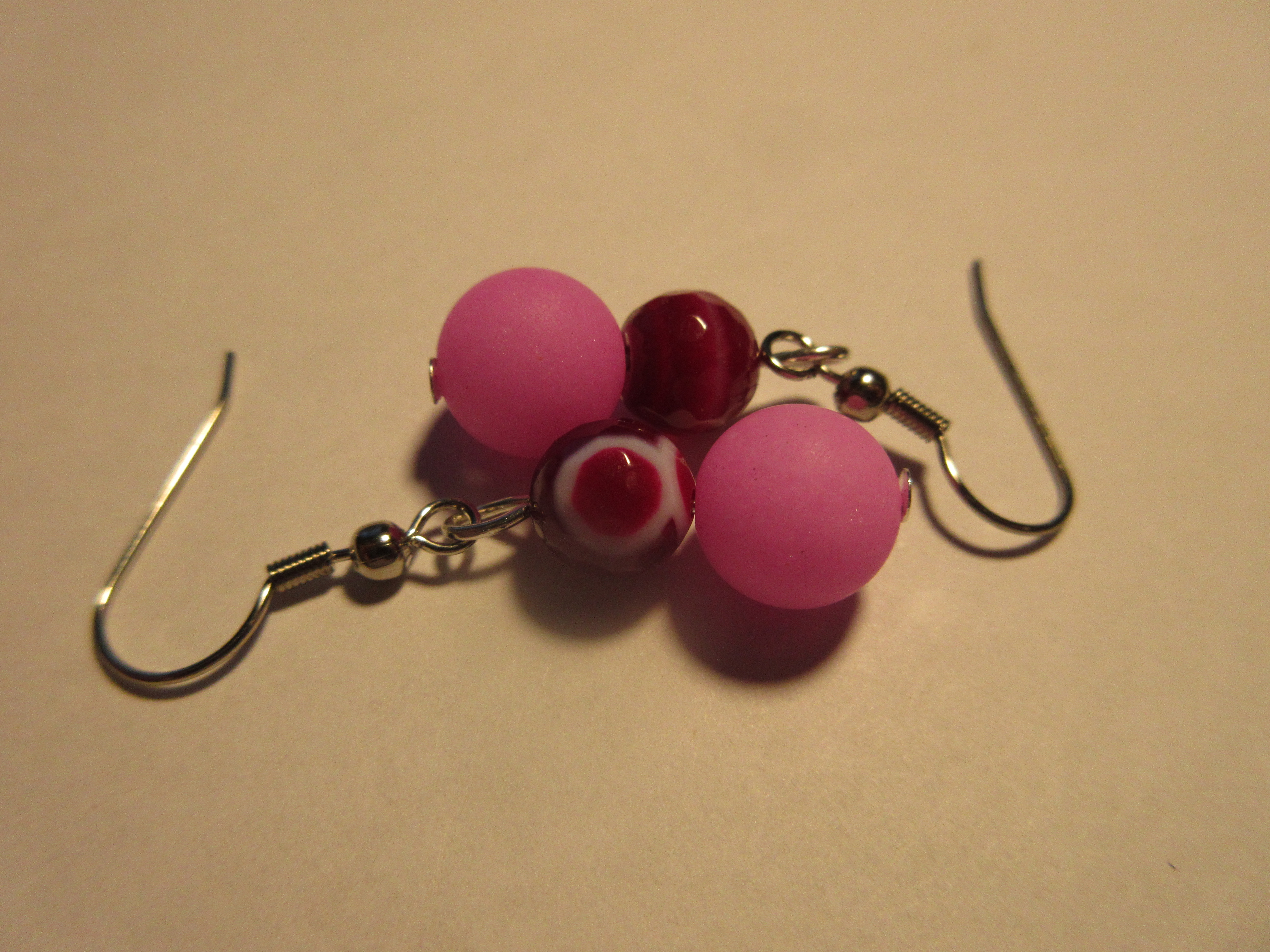 a small deep pink stone and larger glass frosted bead, love the colors.