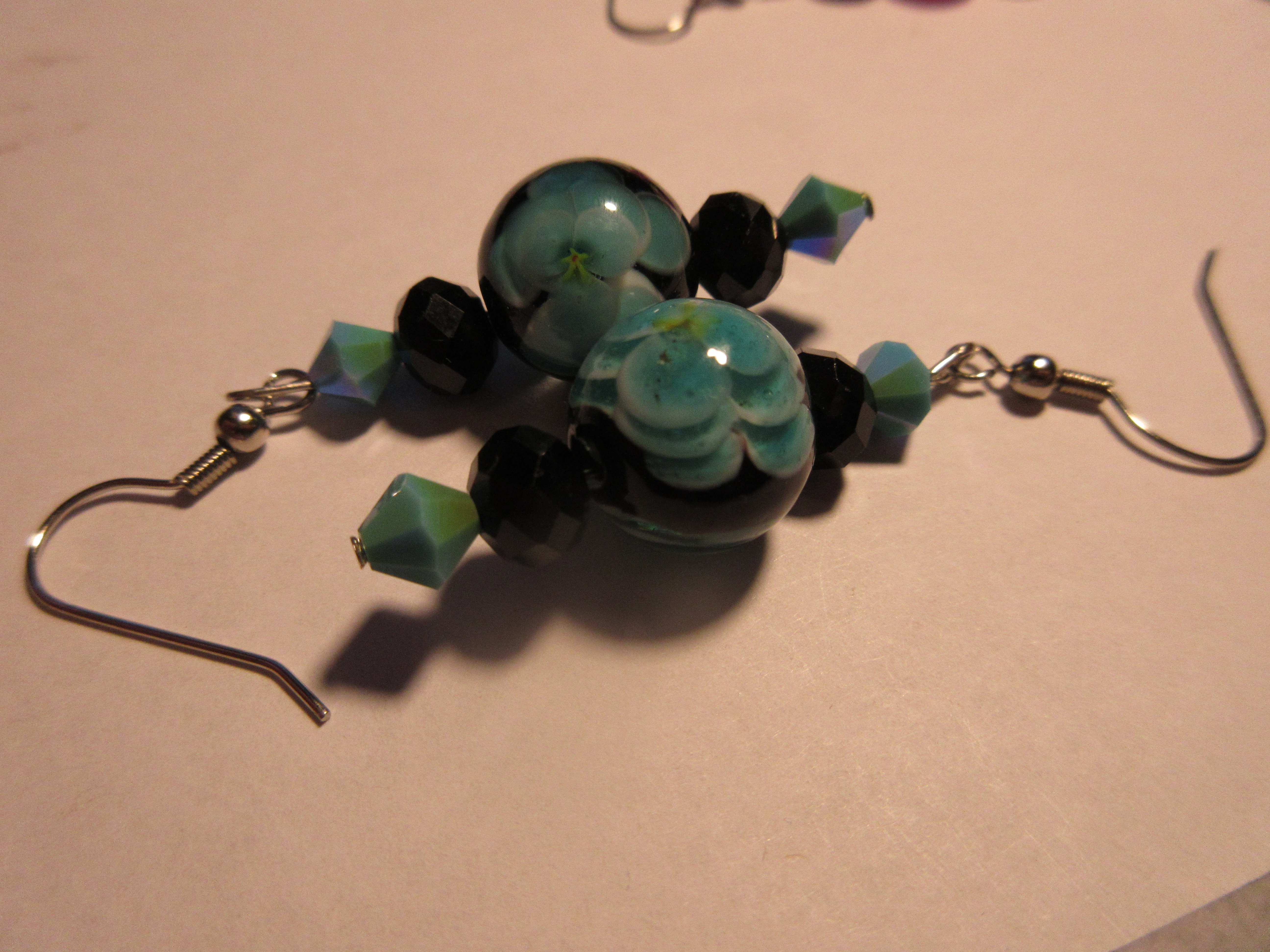 another green bead i love. A glass swirl knot , with a bright blue rhondell. Love the color combo. Another set in black glass beads