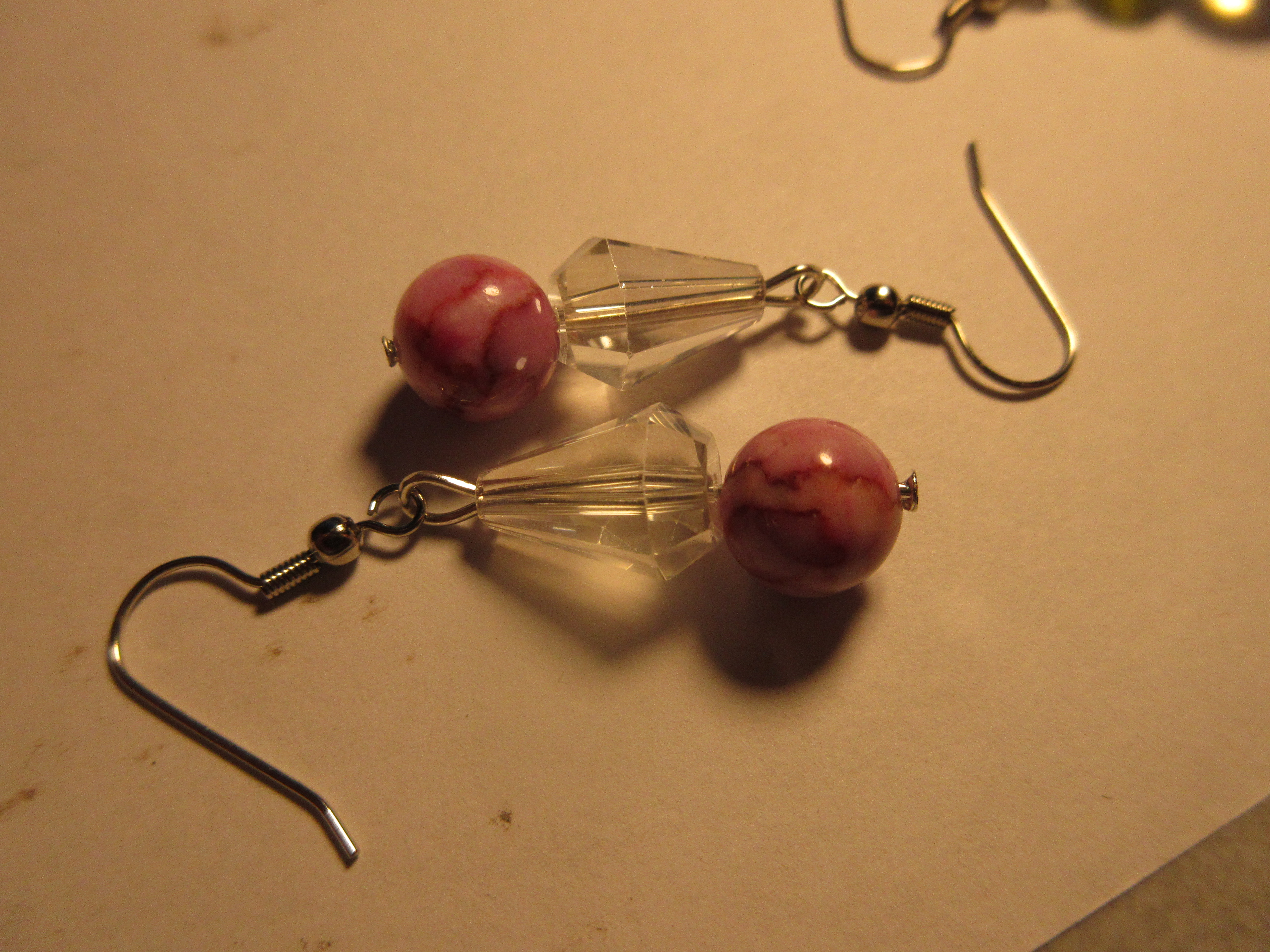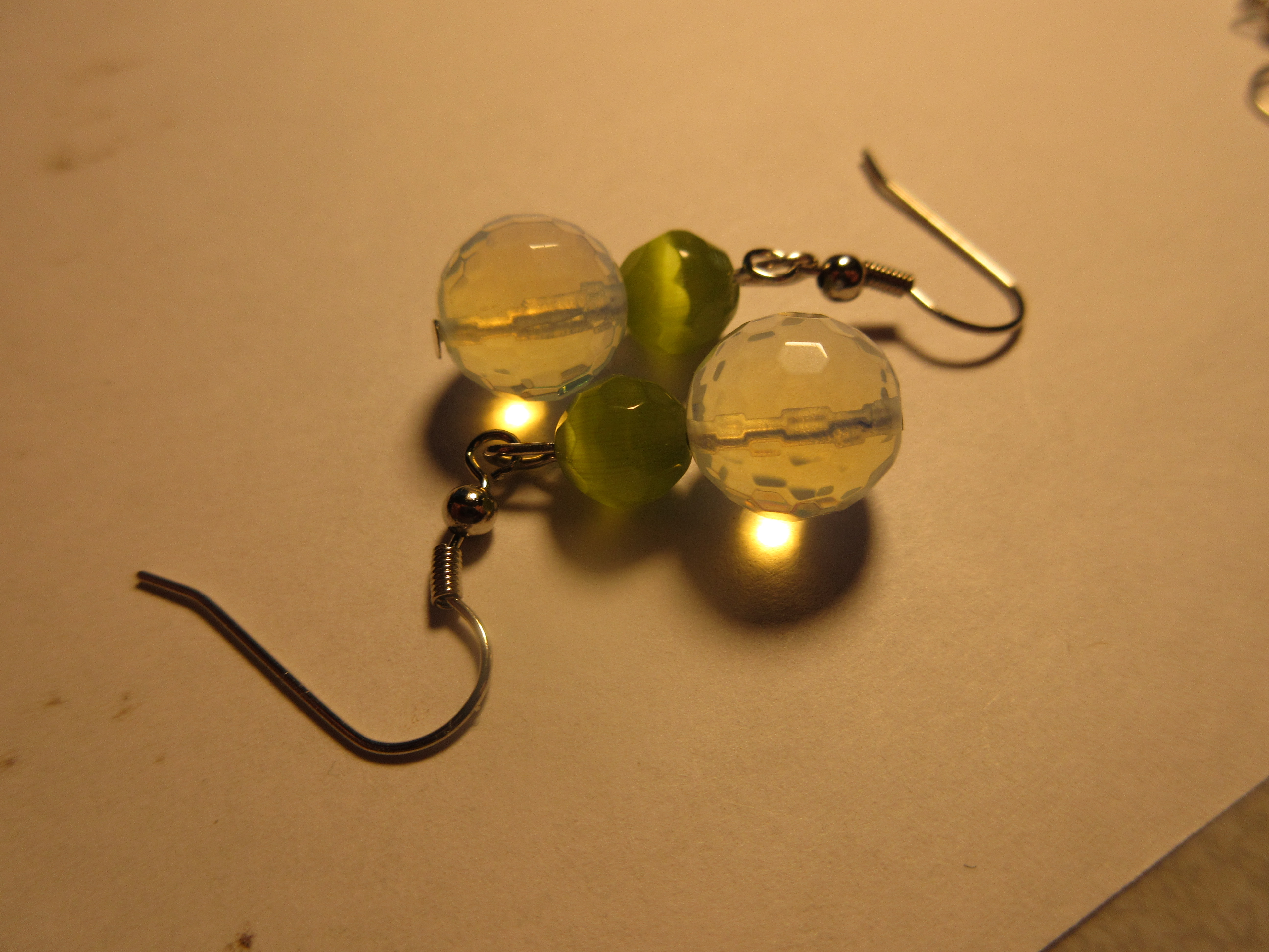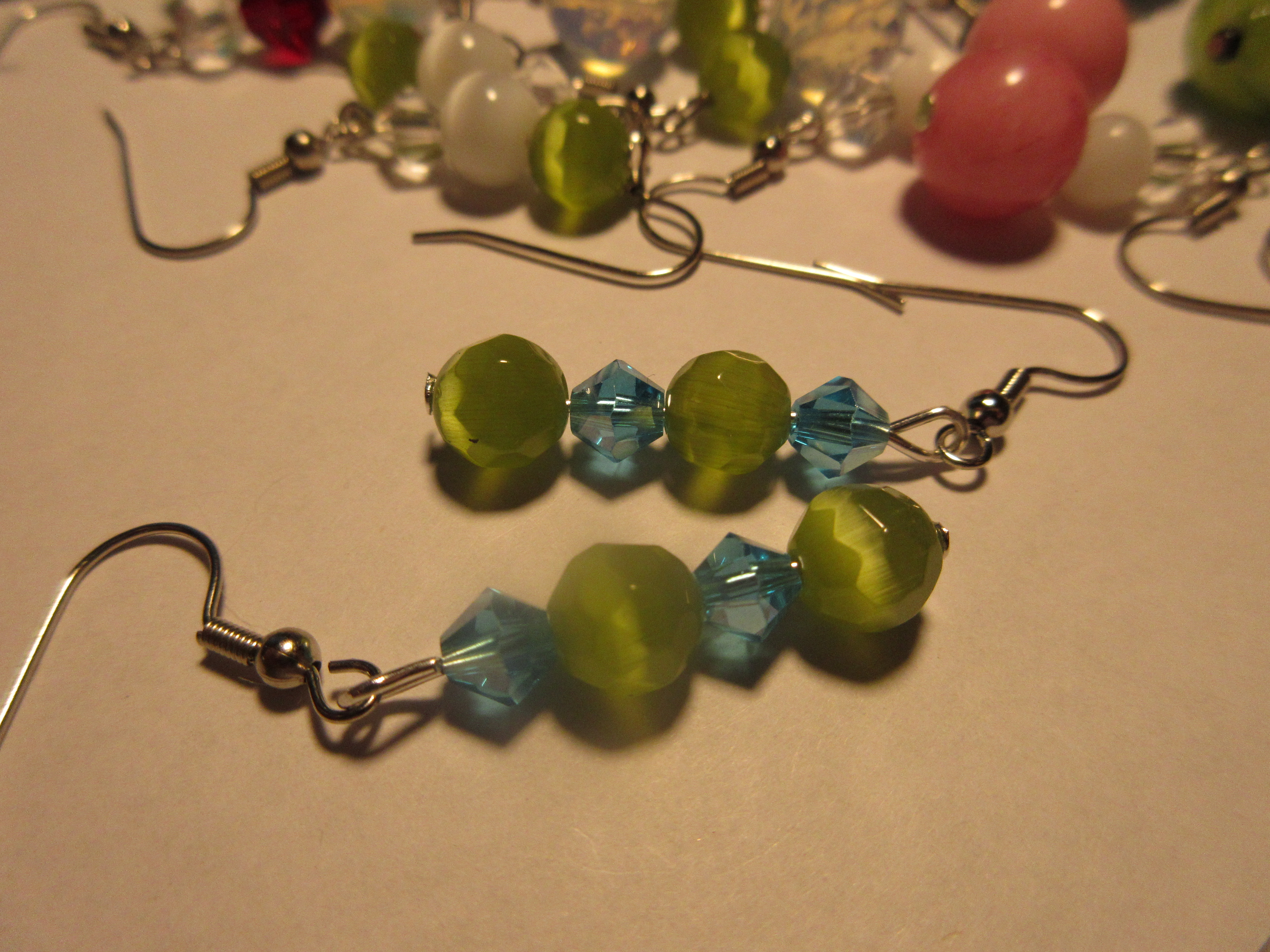 I had found some beads I had been looking for , literally for years. I had made a pair of earrings that disapeared along the way, and had loved the green beads and never could find more. I was thrilled when Hobby Lobby had them on clearance and I bought four strings of them, lol.