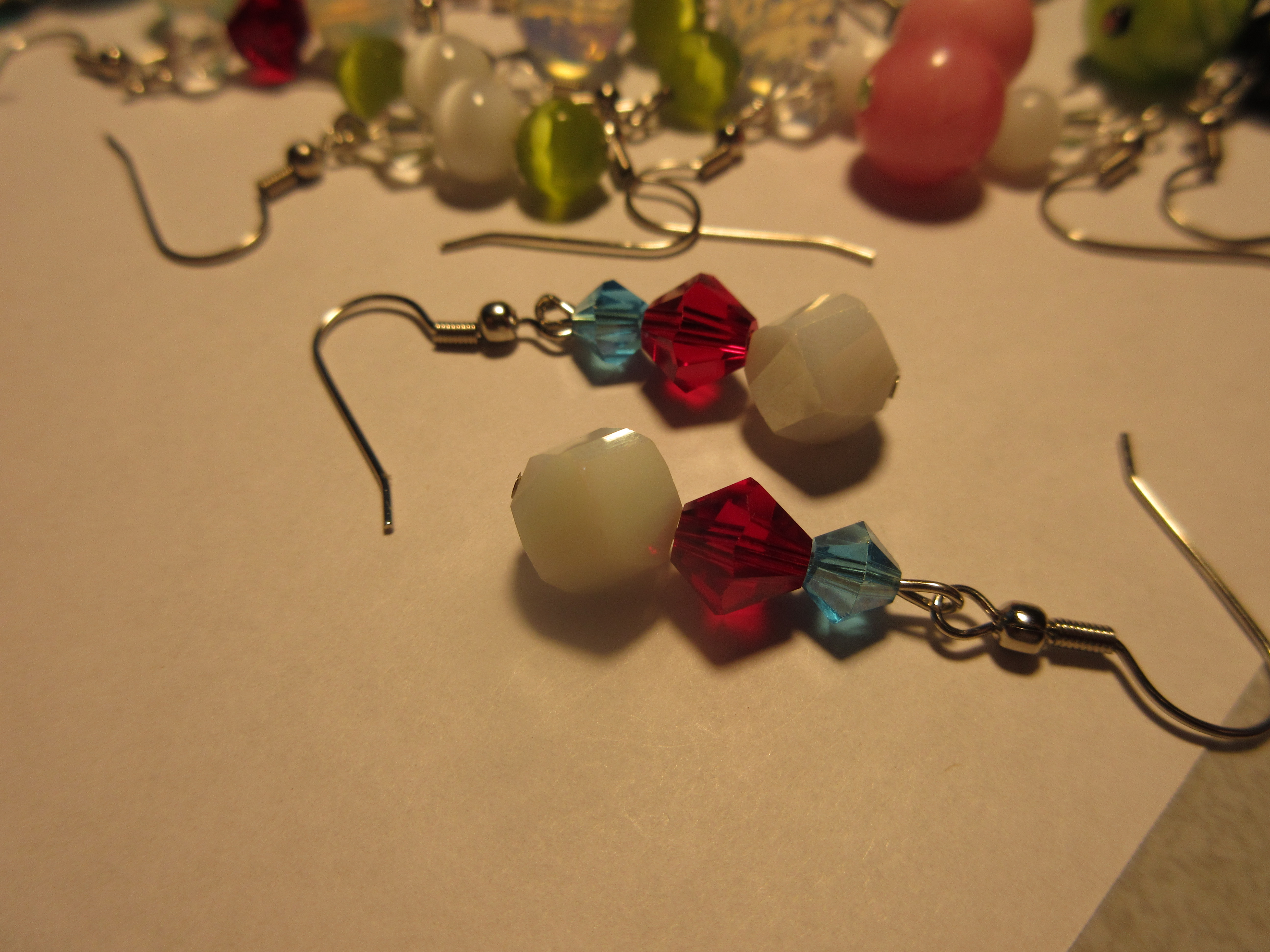 I promised to share whatever I am up to, so I got out some beads , some new and some old, and made myself some jewelry. I figured I might as well have earrings in every color I love and every bead I love, although I will need to figure out a better jewelry storage system so I can see them all and enjoy them !!