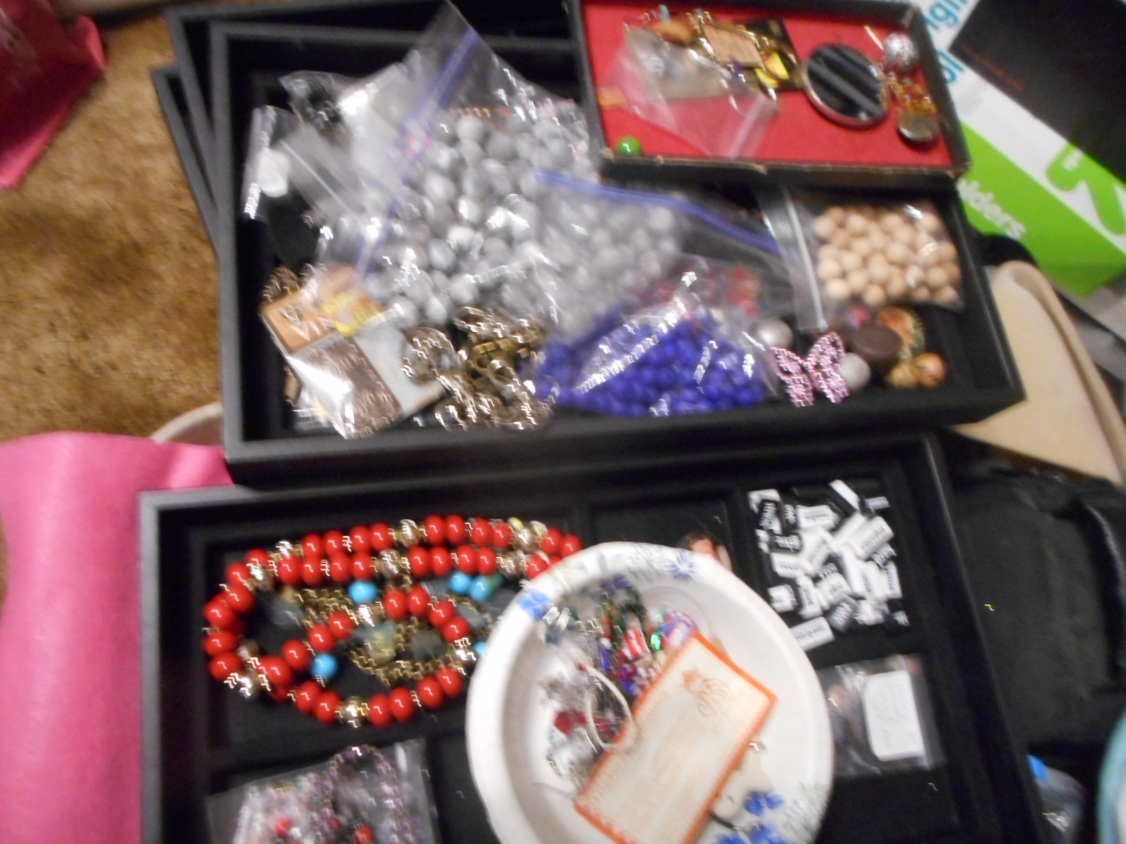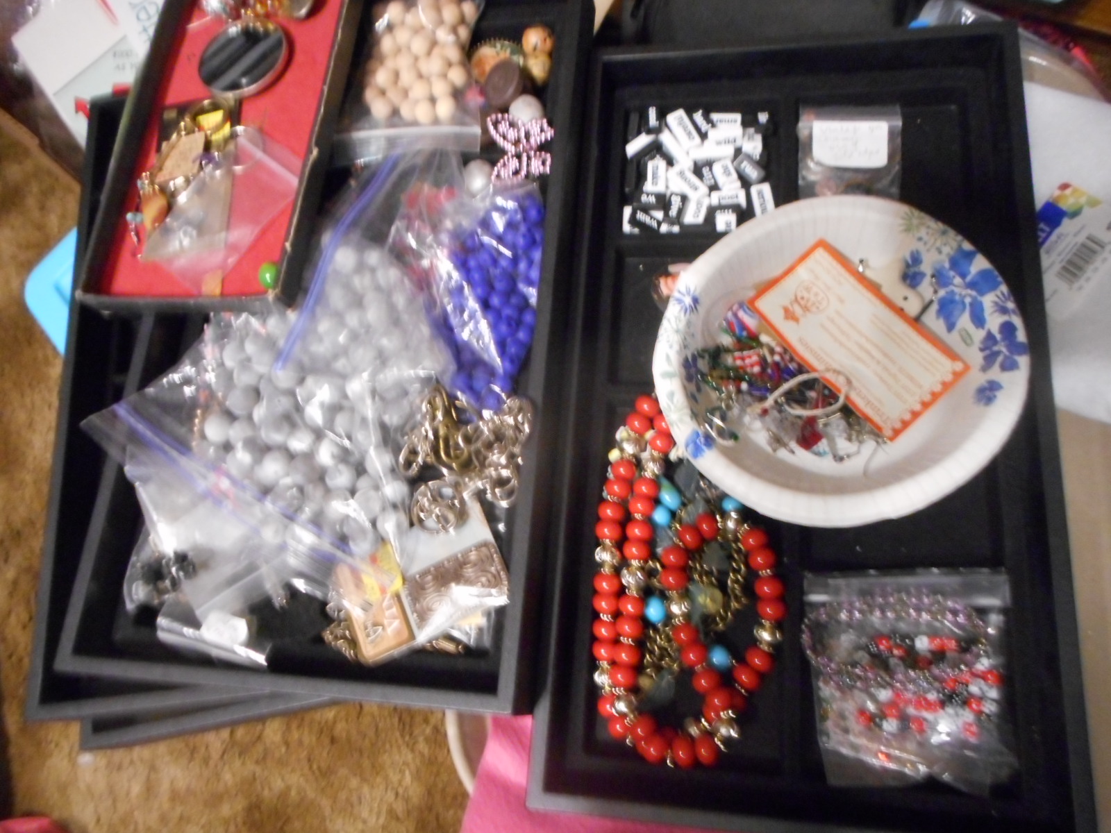 Despite telling myself every single time, I will never do it again, I end up filling trays up with beads and findings when I was making up a lot of items for the store cabinet, and also when I did some stuff to try to get in a boutique, but it did not work out, she needed to buy my items much cheaper than I could let them go. I would have barely broken even.