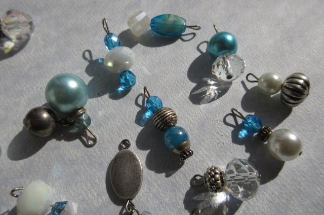 a good friend, who is also a customer, purchased three of my charm bracelets. The first two were heavy, 30 charms each and they were too heavy for her, so she had me take a white, and a blue bracelet apart, and only put half the charms back on, and then take the left overs and make a blue and white bracelet, these are the charms left over. Figured someone could use them. I hate to take apart all that work !!