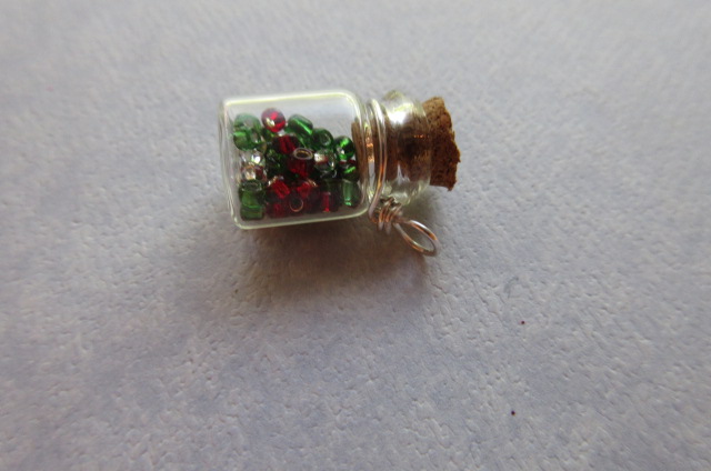 here are some new listings !! A tiny bottle filled with seed beads, you can see how big the beads look in the bottle, so you know it is a tiny bottle !! I plan to do these in many colors, and listed a bunch of choices, but I have to pick my battle and did a Christmas one for now to show. I wire wrapped it in a silver plated wire.