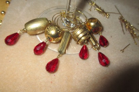 I made some wine charm sets for a customer which got me excited about making them again, so I made a few really unique ones, but they were not sold, I still have them listed so we will see !!! I have some other sets listed as well on my etsy page, there is a link on the side of this page !! These are vintage gold tone beads and red glass beads on the top one, and cobalt blue glass beads with raw brass stampings, also vintage. Really pretty in person .