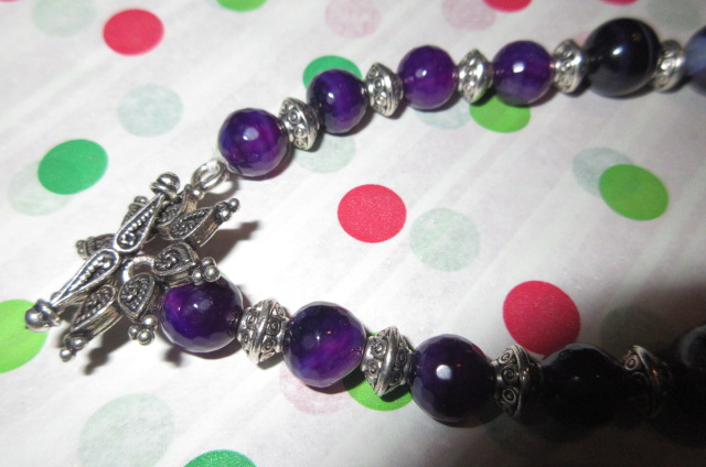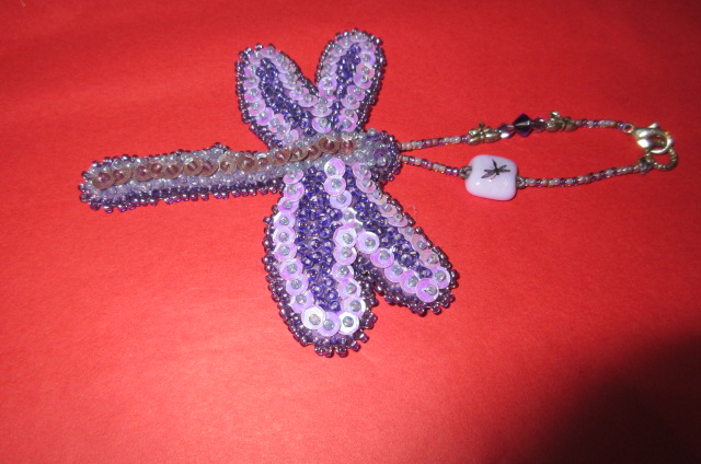I made this purple dragon fly for my dear friend who I have done all the purple tassels for, and used some of her left over beads to decorate the loop !! I had so much fun making it for her and was thrilled when she told me how much she loved it !! That means a lot to me !!