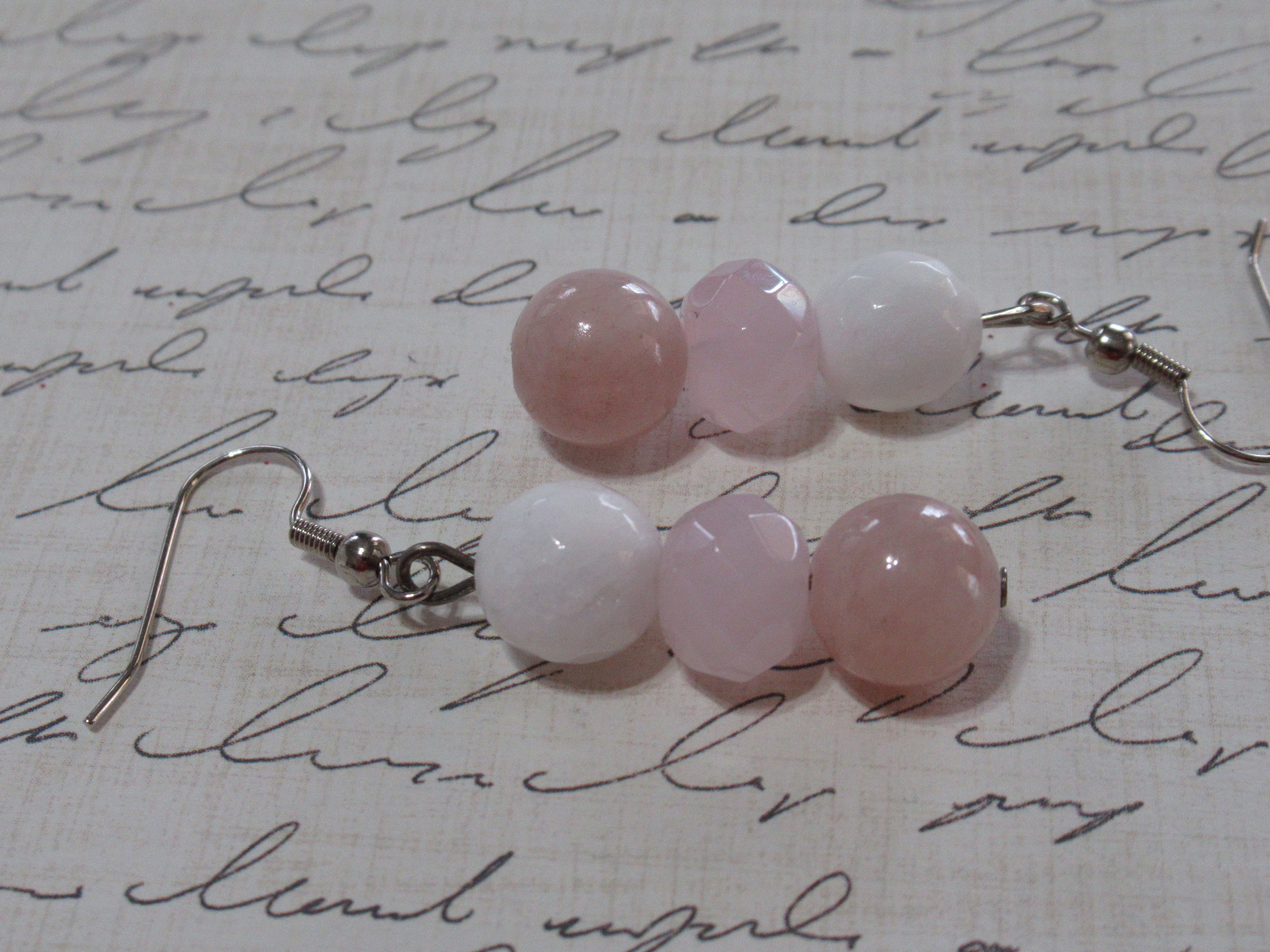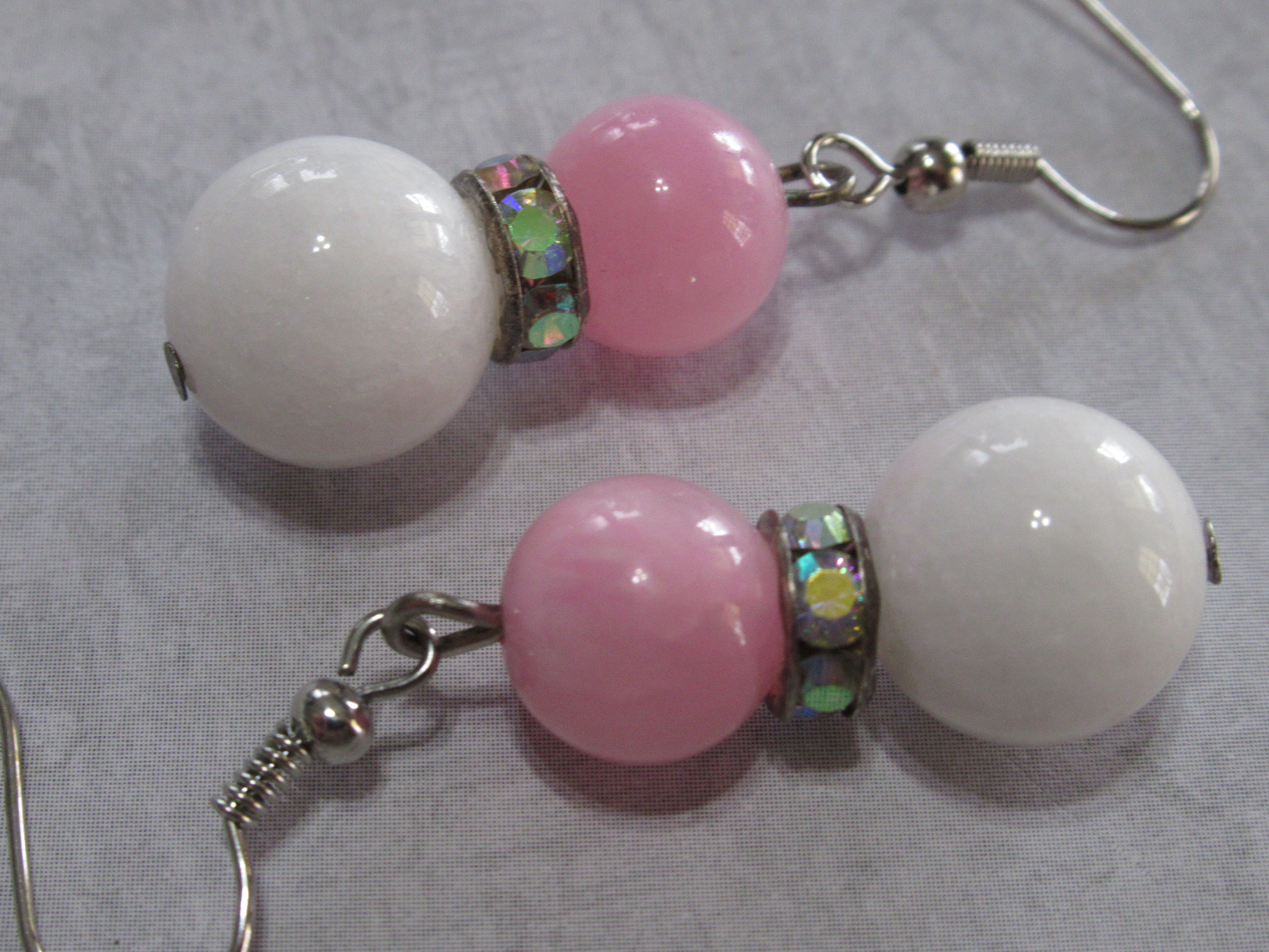 pink and white stone, with a pretty rhinestone spacer that has AB stones so it give off a pretty and colorful sparkle. Different then the usually clear rhinestone spacers I use most.