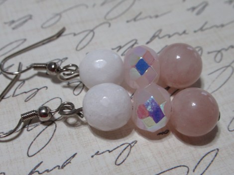 Candy jade white, and a pink stone on the bottom, not sure what, and then some pink glass faceted with one side AB, which I showed here. The other side is not sparkly but the bead is still pretty.