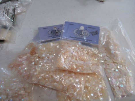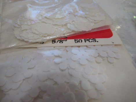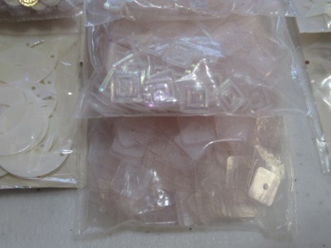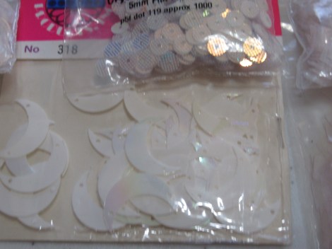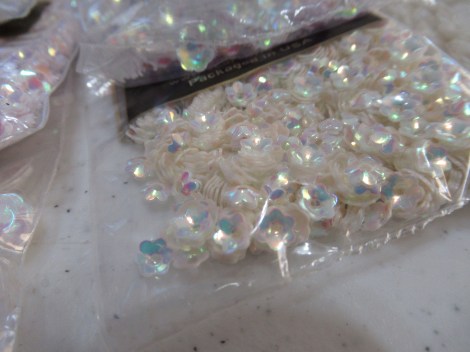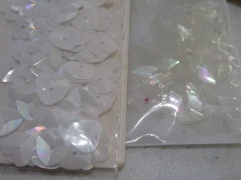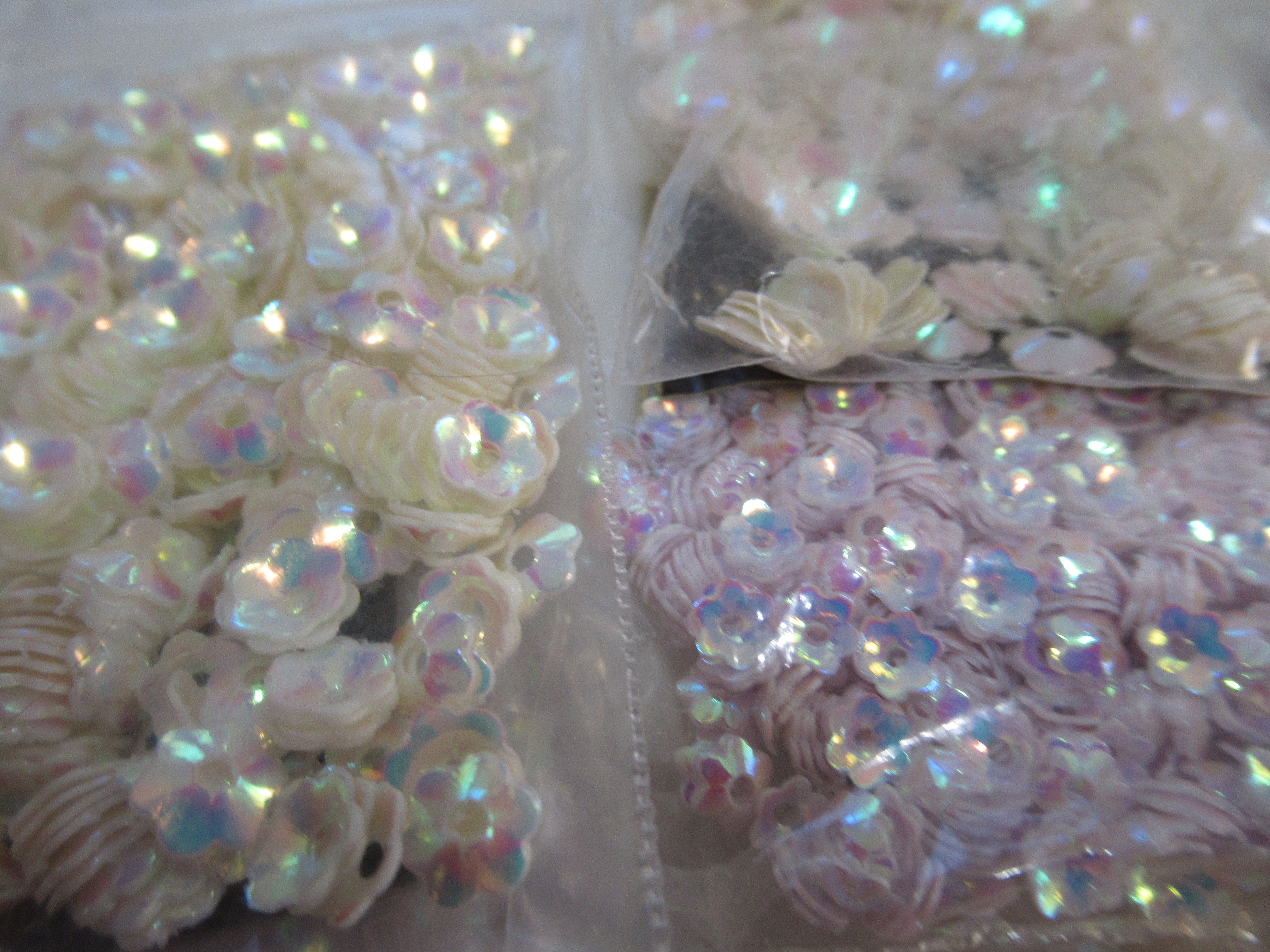 These are my vintage sequins, I love the star bursts, when I bought my 2000 bag haul I only got two white, out of orange and green and other colors, but kept those two white for myself as I loved them so much. I have some flats in clear and white and then some of the normal semi cupped.