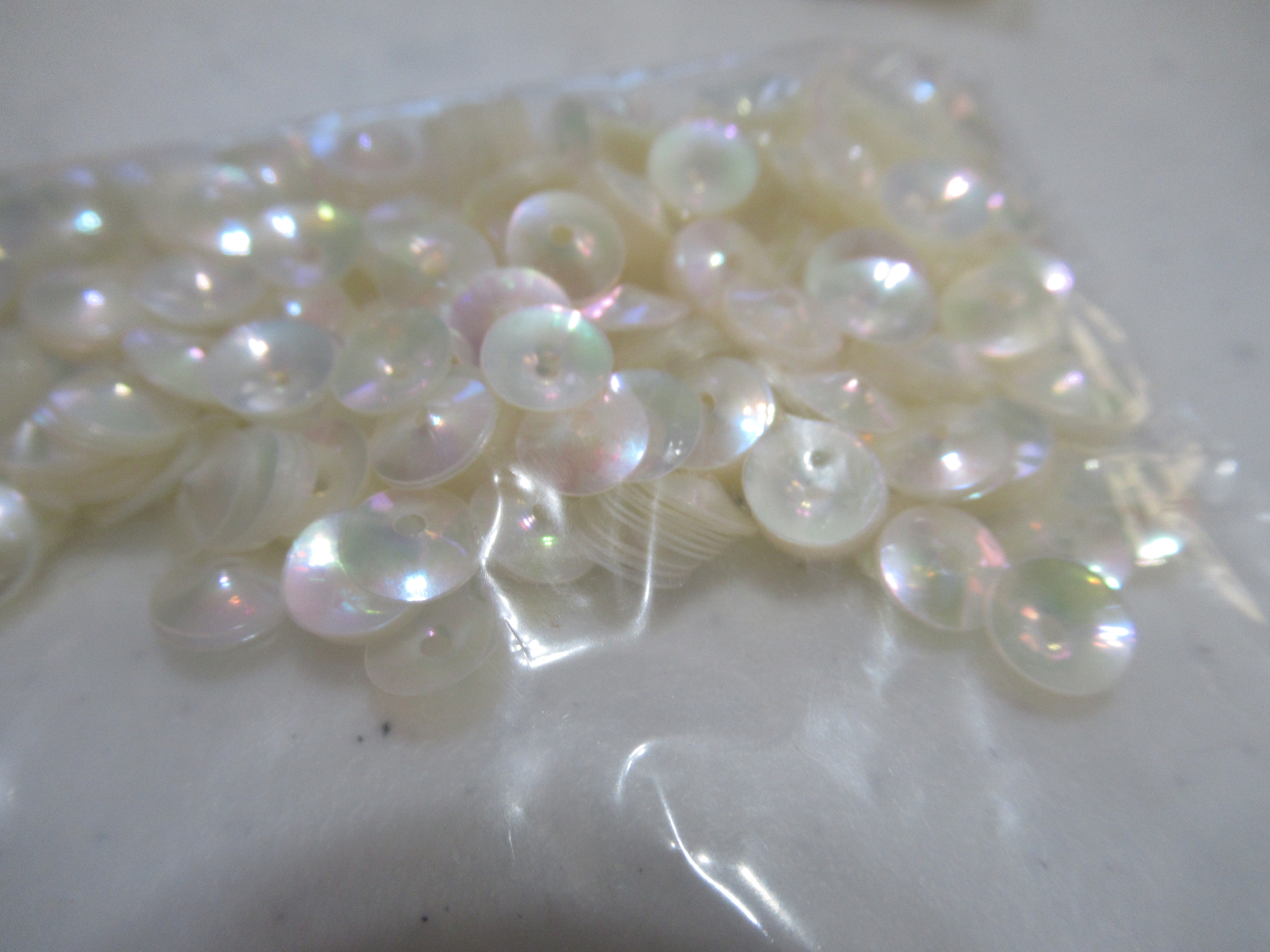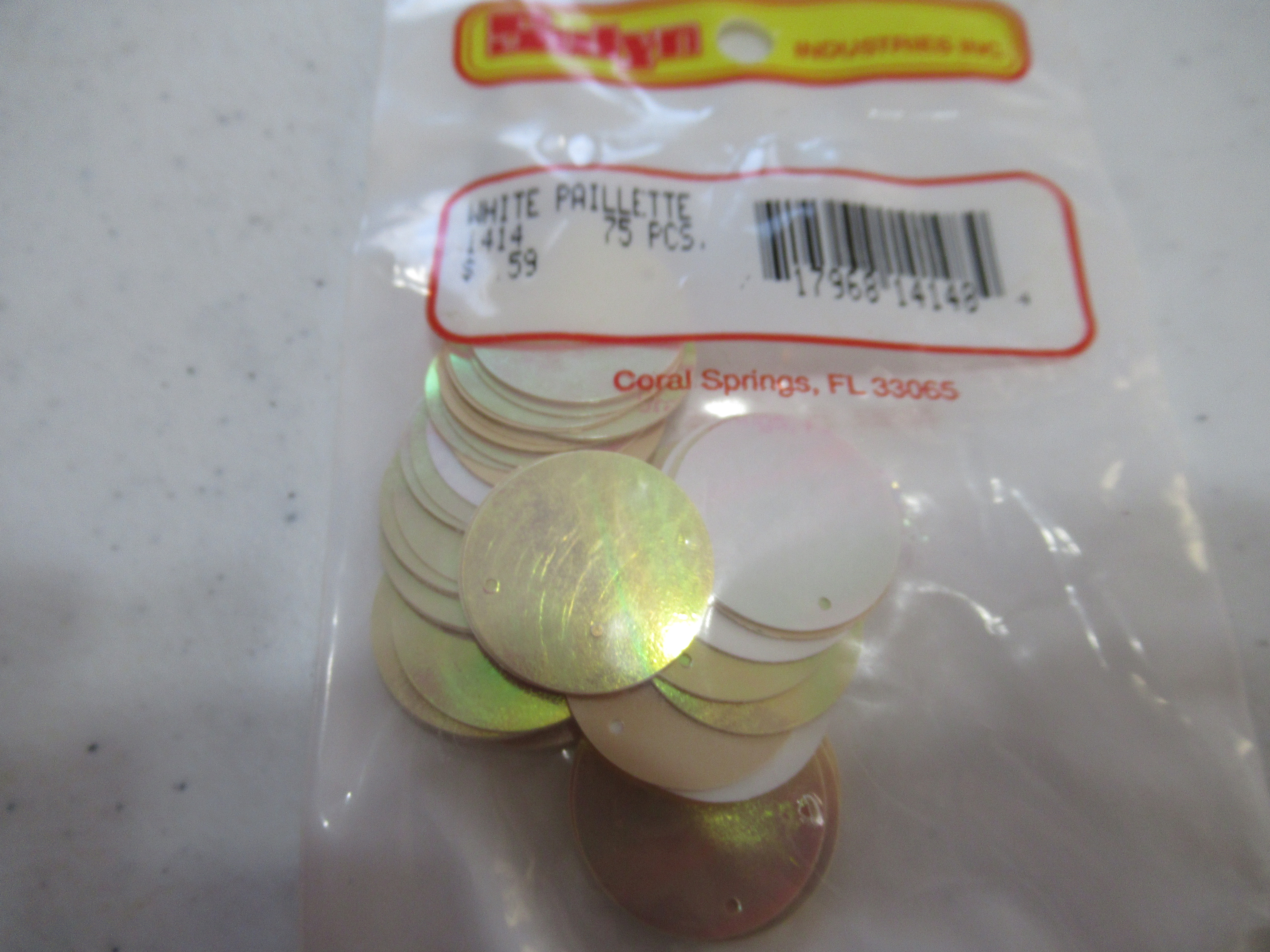 lets start with sizes. I have whites in 3,4,5,6,8,10,12,20,and 24 mm. There are other sizes , in fact, I just found my biggest semi cupped sequins this past few weeks at Hobby Lobby . 12 mm was the biggest I had ever seen. But I got some that were 24, absolutely huge and I could not be more excited to layer then with other sequins.