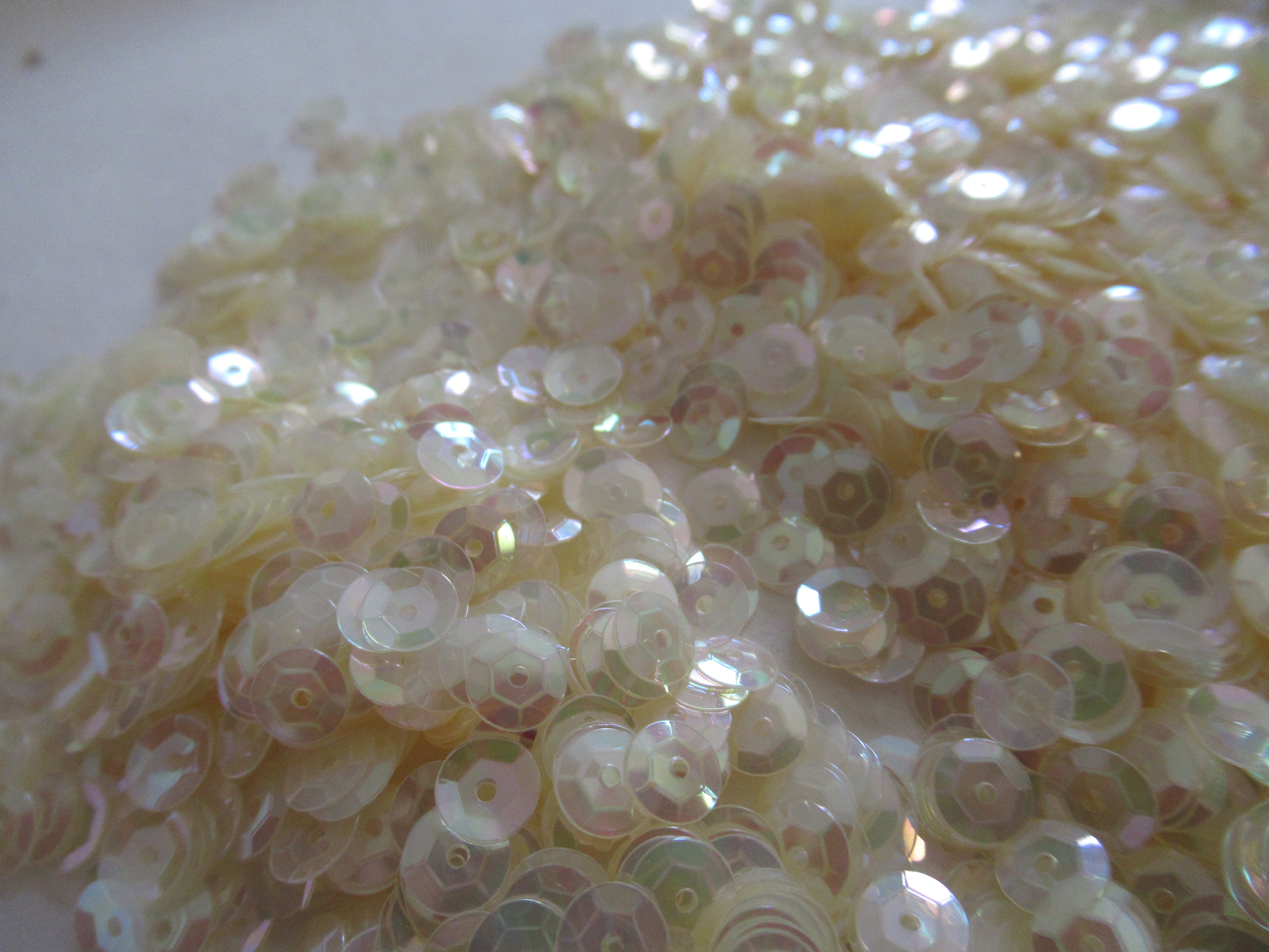 When I first started working with sequins over 25 years ago, there were not many to choose from. Mostly metallics, gold, silver, blue, red, green, sometimes a yellow green, rarely brown and orange, at least where I lived. But I found these. Back then they were much clearer, after 25 years they have yellowed a lot. But I could put these over a bright colored felt, and the color would come through very pretty, and I would use a clear seed bead to hold on the sequin. I still have all of these, and individually, they are not as yellow as they are in the package. Even the different packages are different in the amount of yellowing they have and the bag of loose ones I rebagged years ago, has much less . I am wondering if the bags could be part of the yellowing. The ones I bagged have yellowed way less. They are by far the most reflective and beautiful of all my sequins, and I think the aging adds to it. I love all my whites and clears, but these still hold a special place in my heart !!