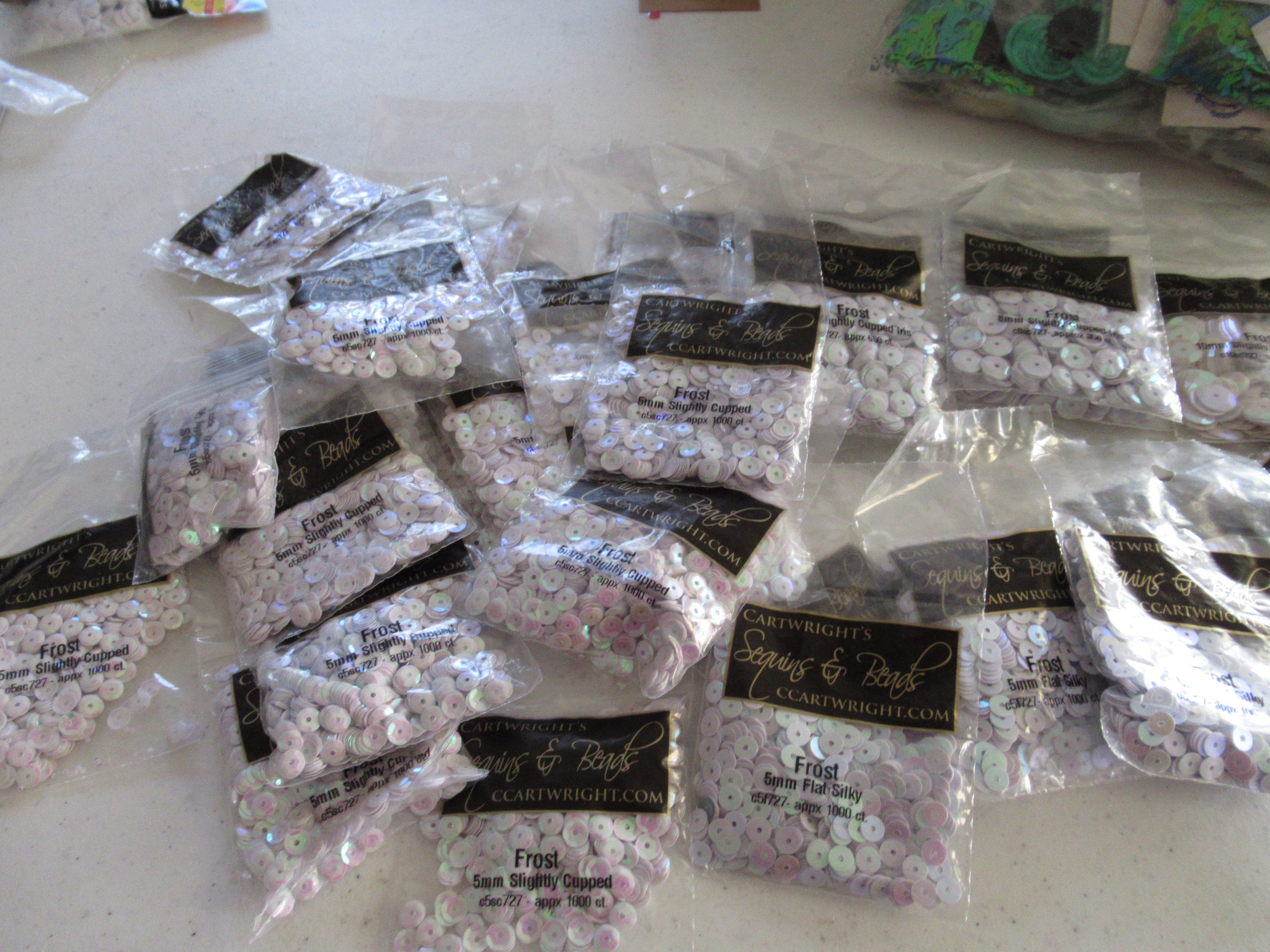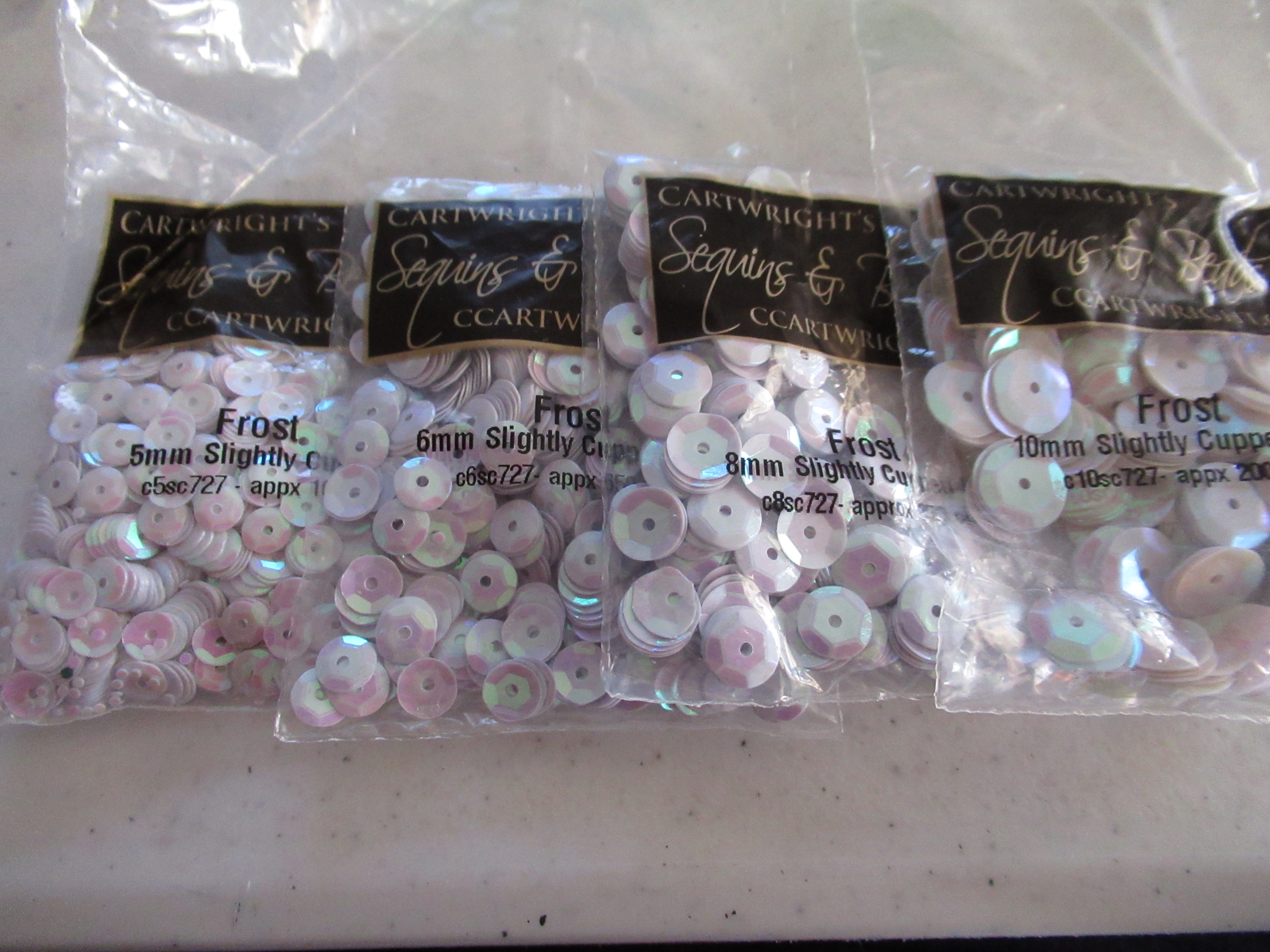I have a ton of frost, but that is beause a few years ago, Cartwright had an insane sale where they had certain colors at 25 cents a bag, and the few colors they had, I bought a lot of them. So, I have quite a few of the frost in both the cupped and flat in several sizes, but mostly 5 because they are best for some ornament kits I plan to sell in my Etsy shop this year.