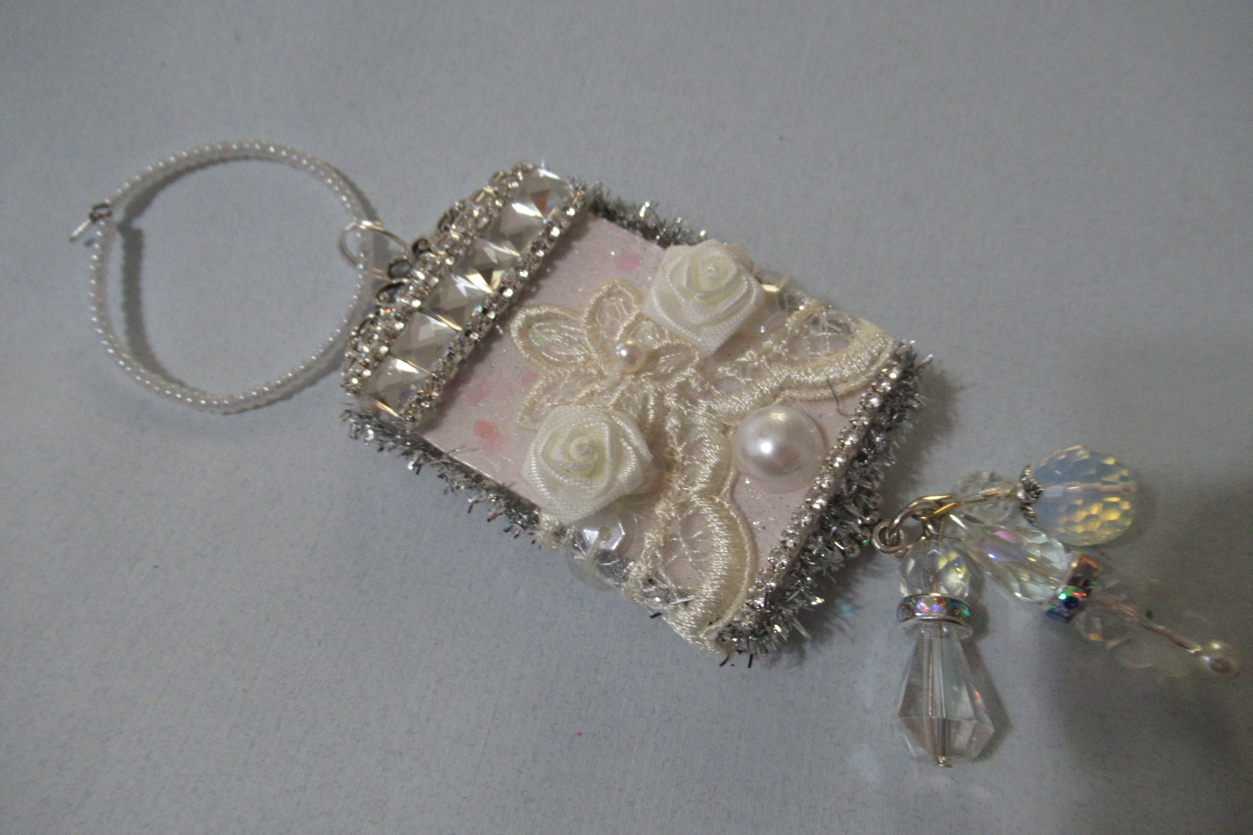 Here are the few pieces I actually finished and listed in my etsy shop , the first is a wedding themed piece. Can be a bottle charm, purse charm, or I can add a ball chain for your rear view mirror, which is the same with all three pieces. This one was a piece of scrap wood my hubby had in his stash and gave me.