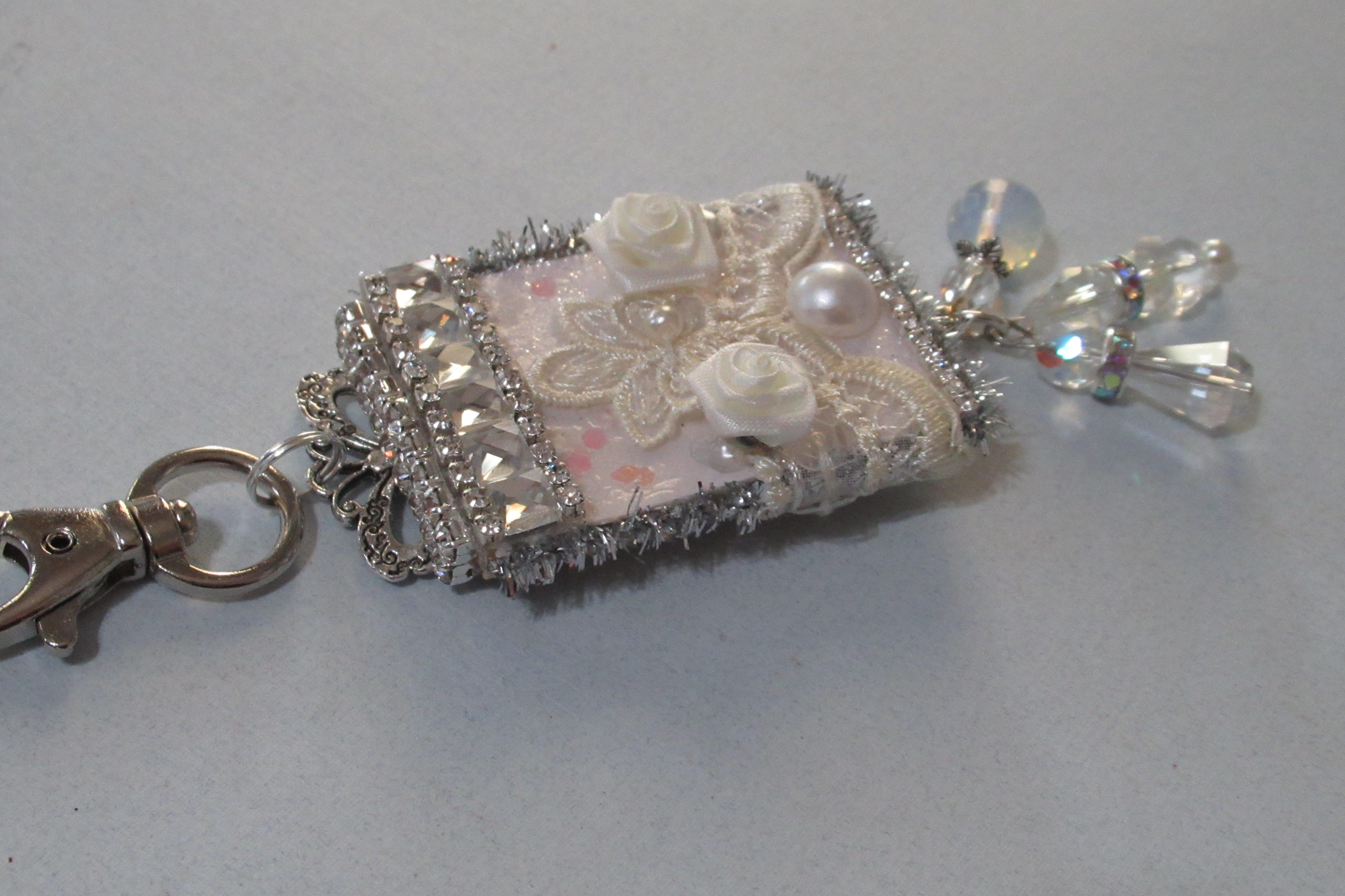 A lot of fun bling goes into these projects, taking apart old stuff, buying inexpensive rhinestone chain from China, some really pretty stuff, really cheap.