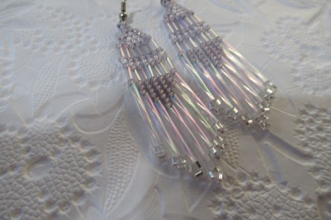 As you can see I am kind of all over the place. These earrings came out so reflective and pretty. I used some absolutely stunning beads. I wish I had these types of beads around when I started this type of work. I have so many beads now, and they just did not exist back when we started learning to do seed bead jewelry.
