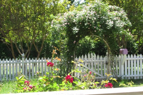 But this is what I have been up to, along with taking pictures of all the stunning flowers right now !!! this is our beautiful rose arch, every year for a few weeks we are blessed with this display. It is wonderful and smells like the Avon rose cologne that I have always loved. I suppose the cologne smells like it, ha !!! The red roses grow up in front of our porch and there is a big peach rose that grows out of this bush as well. Very strange.