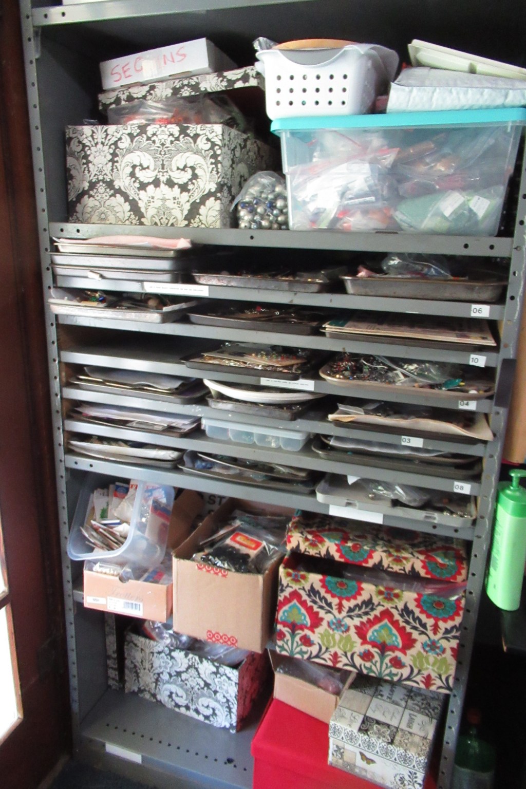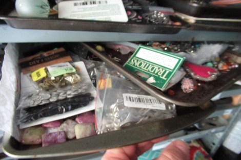 I think of a lot of fun things to do, but never follow through because there are so many I want to do. I get overwelmed. I started playing with multi media art and jewelry, but left a lot of items unfinished. I am in a constant state of chaos. I need to sit down and go through all my trays and organize them once and for all. I have 14 trays of beads, sequins, seed beads, charms and so on, some new stuff, some jewelry to take apart, some beads, and just a lot of wonderful stuff, just stored on trays. These are treasures to me, not junk, good , amazing , wonderful treasures that I want to use or resell . I need to get them organized. My biggest issue is my shelf that I keep my beads and findings and charms, those two shelves cannot hold one more box. Many of these things can go in the existing boxes, but once those are to capacity, I am in trouble storage wise. I could go up to the top shelf, but then I cannot reach the stuff without a step stool. So, I am going to see what I can do this week to get those trays emptied and organized. I had a yard sale with our two daughters and a friend this weekend, AND had one of the daughters kids all weekend, sold her stuff but she and her hubby were out of town, so my work table is outside still, got to clean the studio out so I can bring it back in, and then this coming week I hope to really work on those trays.