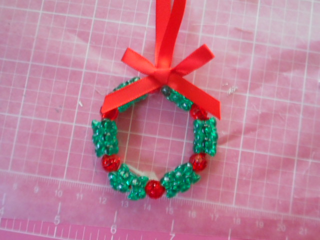 I made a wreath ornament from pipe cleaners, tri beads and some 8 mm faceted plastic beads, also ribbon and a glue gun !!! Lots of fun !!