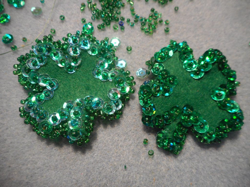 I am getting back in the swing of things and just posted a fun St Patricks day beaded and sequined pin tutorial. It was fun to make and it is a quick and easy project. Green sequins and seed beads are readily available for most peole as well as green felt !!! Pin backs are available at any craft store and online .
