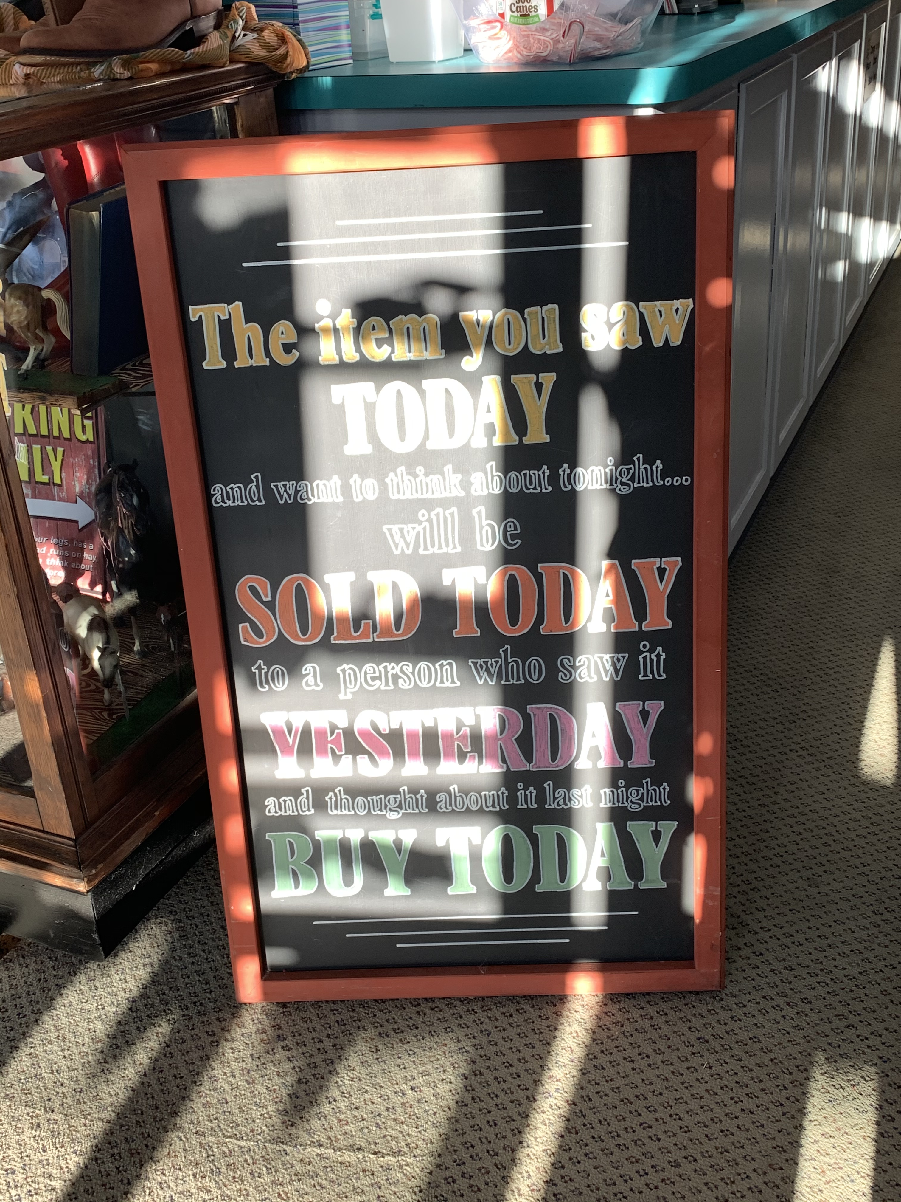 When we walked into the antique mall they had this great sign. Lots of sun through the window, but still a great pictures, and so true !!