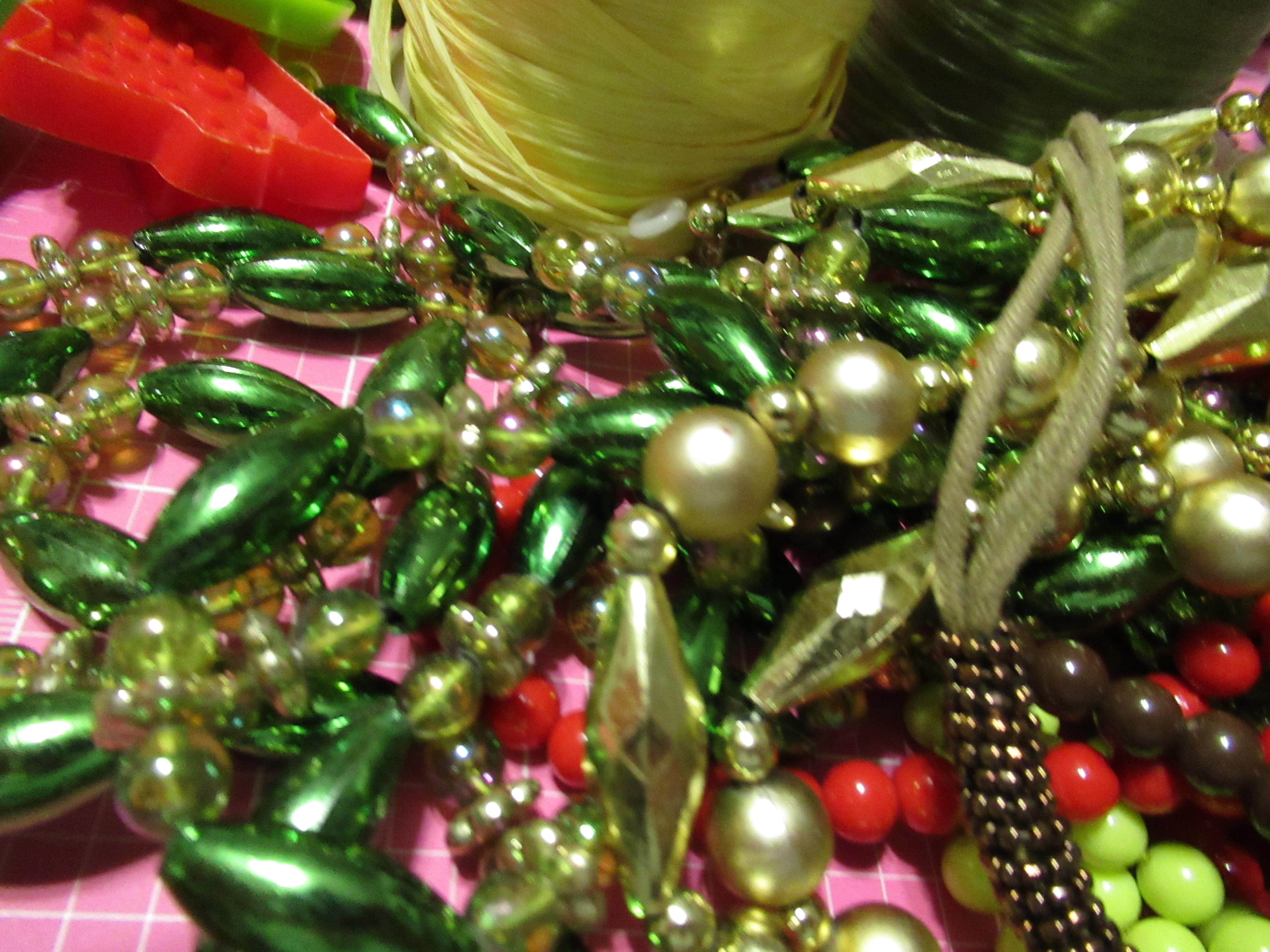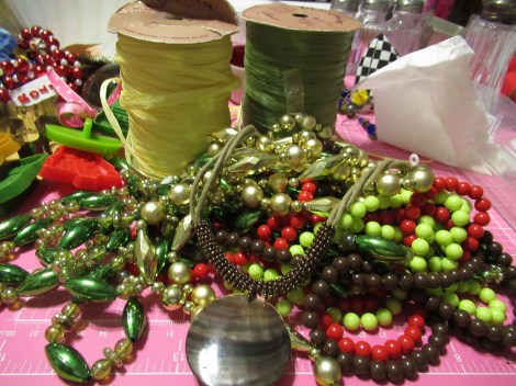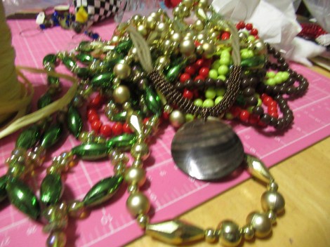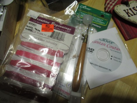 wonderful bag of goodies for two bucks. Some more jewelry and some awesome rafia ribbon, vintage.
