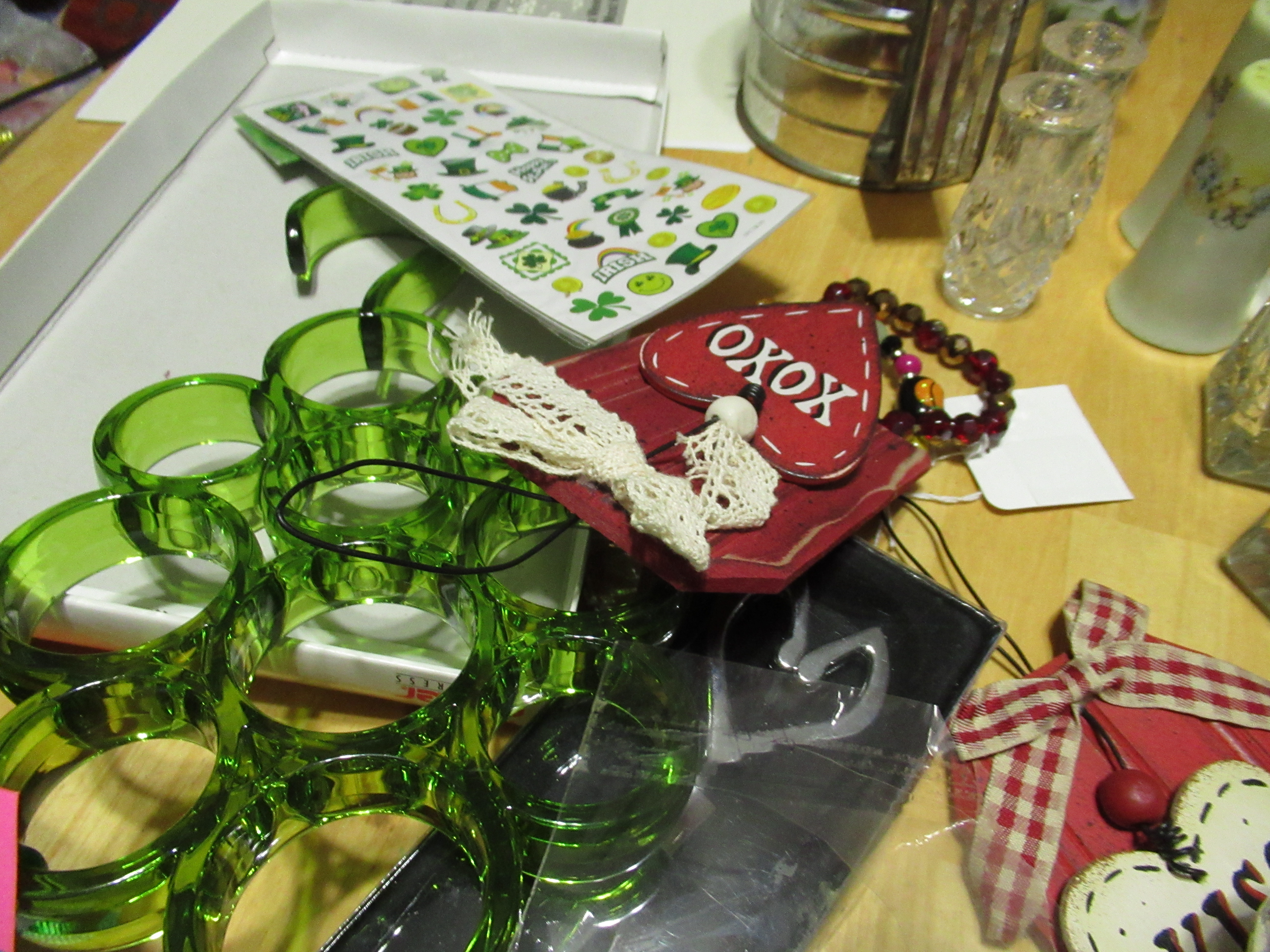 scarf hanger, some valentines, some St Patrick stickers, and other things.