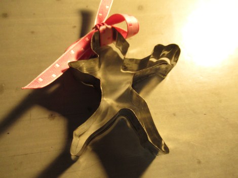 a funny skinny cupid cookie cutter, with a nice ribbon tied on !!