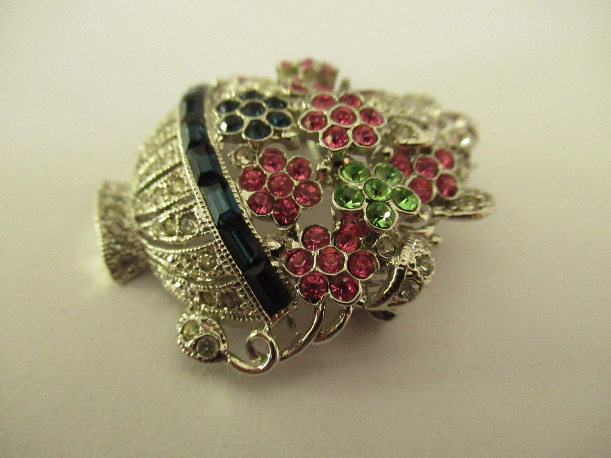 a lot of rhinestone stuff, a gorgeous mint Weiss piece, but missing the clasp. I put it with some junk jewelry for people to use for crafting.