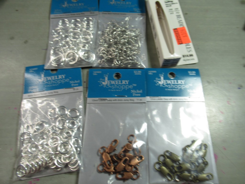 got a bunch of half price findings as well. Normally 3.9 but paid 1.99. Ear wires in silver, some jump rings in silver and some antique brass and copper lobster claws and then some fancy beading needles on clearance. The beading needs were marked down from 14.99 to 3.74 for only four beading needles. Cannot wait to see what makes them so expensive !! Normally pay around six bucks for around 20 beading needles.