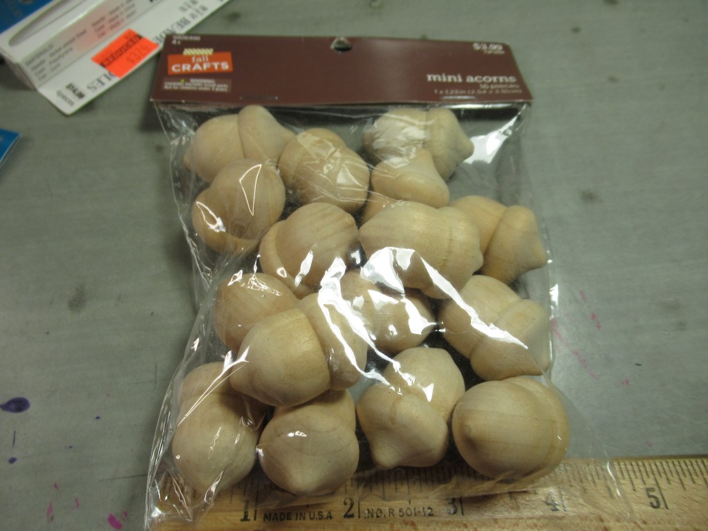 fun bag of wooden acorns, want to make them into either pendants or beads with my hubby and his drill presses help !! LOVE these !! Got 40 percent off these cute acorns, were 3.99, but I paid 2.39 .