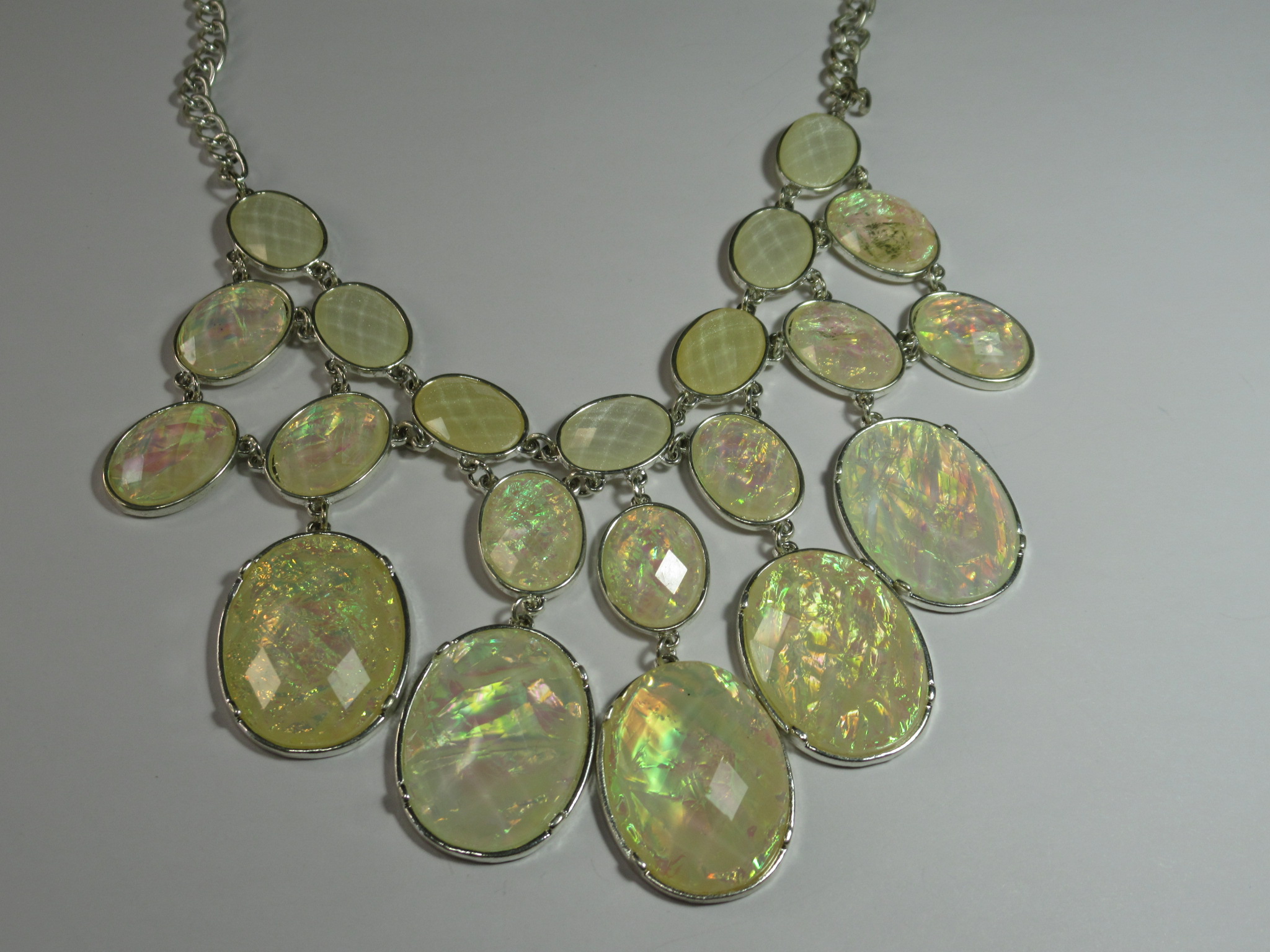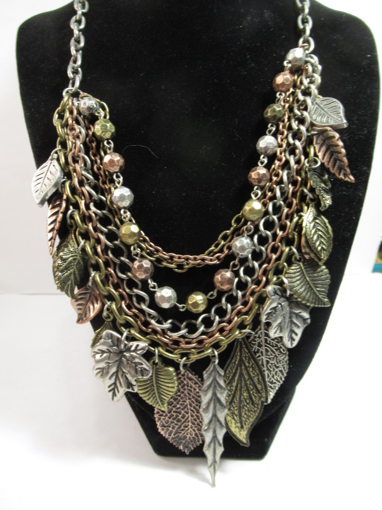 My favorite piece of all of them is this beautiful metal necklace. I love the different colors of metal and the leaf charms.