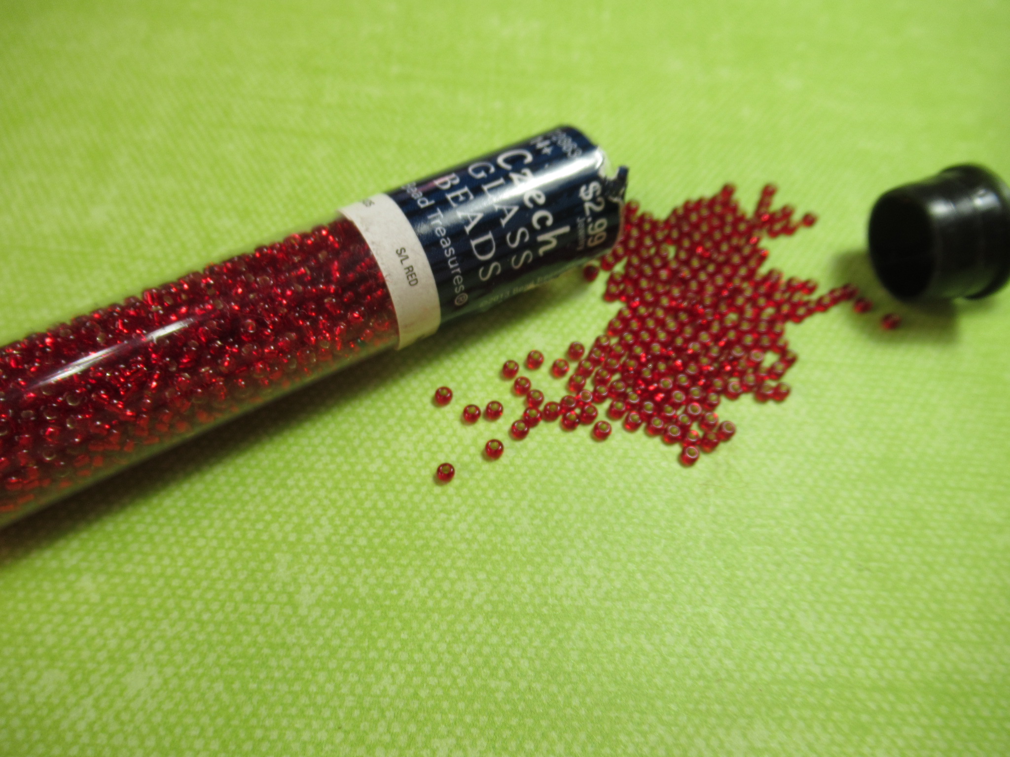 from Hobby Lobby, red 11/0 seed beads, I find them half price a good amount of the month. My favorite place to buy sequins, they run about 1.75 or so a bag. You can find pretty much any size , color or shape of sequins here. I am not affiliated with them in any way ,just a huge customer of theirs !!! white ceylon seed beads. TOHO my favorite brand, and 11/0 which is the size I pretty much always use. You can find a good white seed bead anywhere that sells sead beads, this is just one of many I use, again, not affiliated with this one, or any of them at all. for the eye, I have this same sequin in 5 mm as well. It is one of my favorites !! I adore these seed beads and have bags and bags of them from several different places !!! I use them for many things !!! This was in a bag I got from Cartwrights that has a mixture of different Christmas sequins. I do not think they sell them separate, the holly they sell by itself is larger and individual leaves. You can use anything for that side, or nothing, but this is what I used.