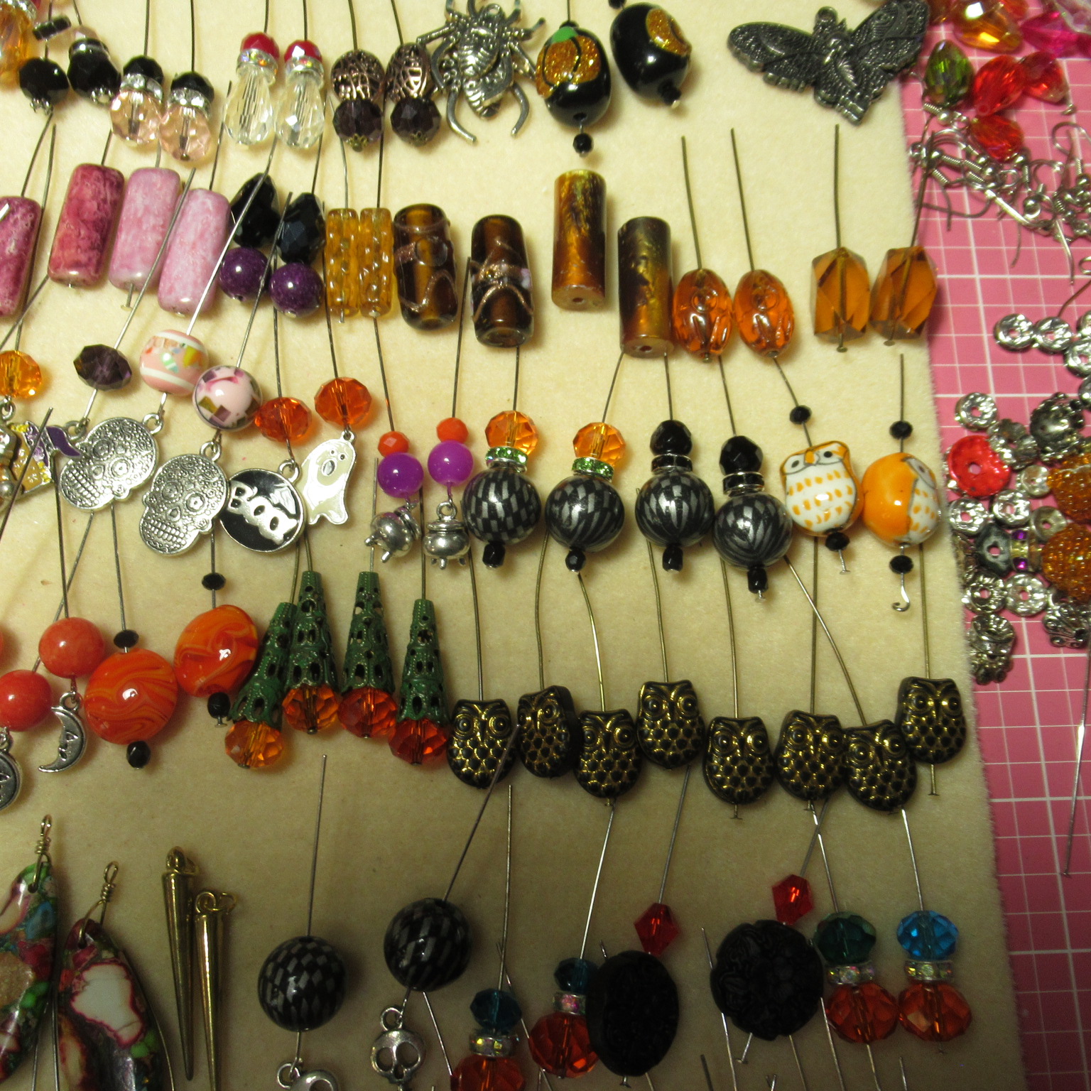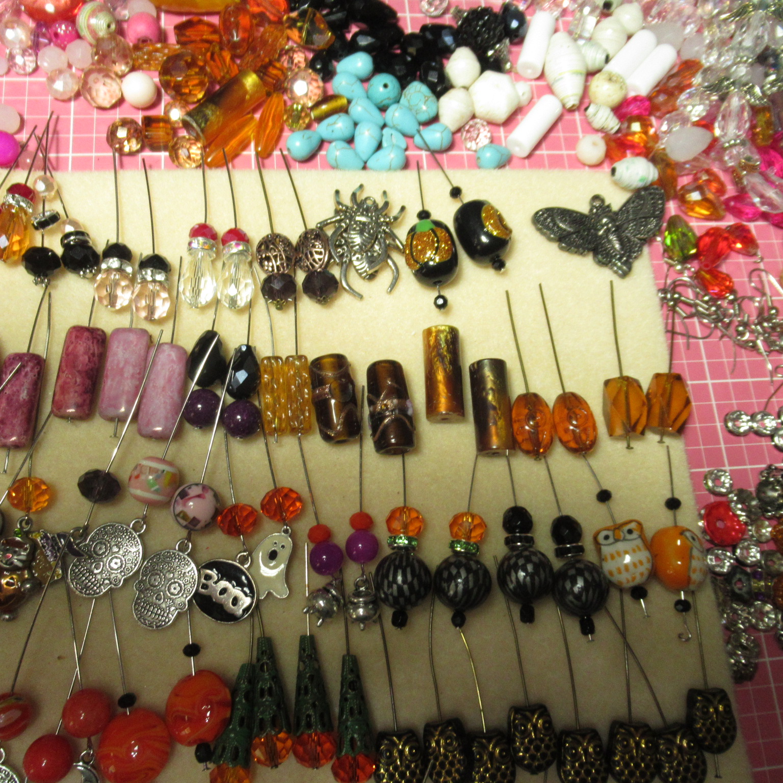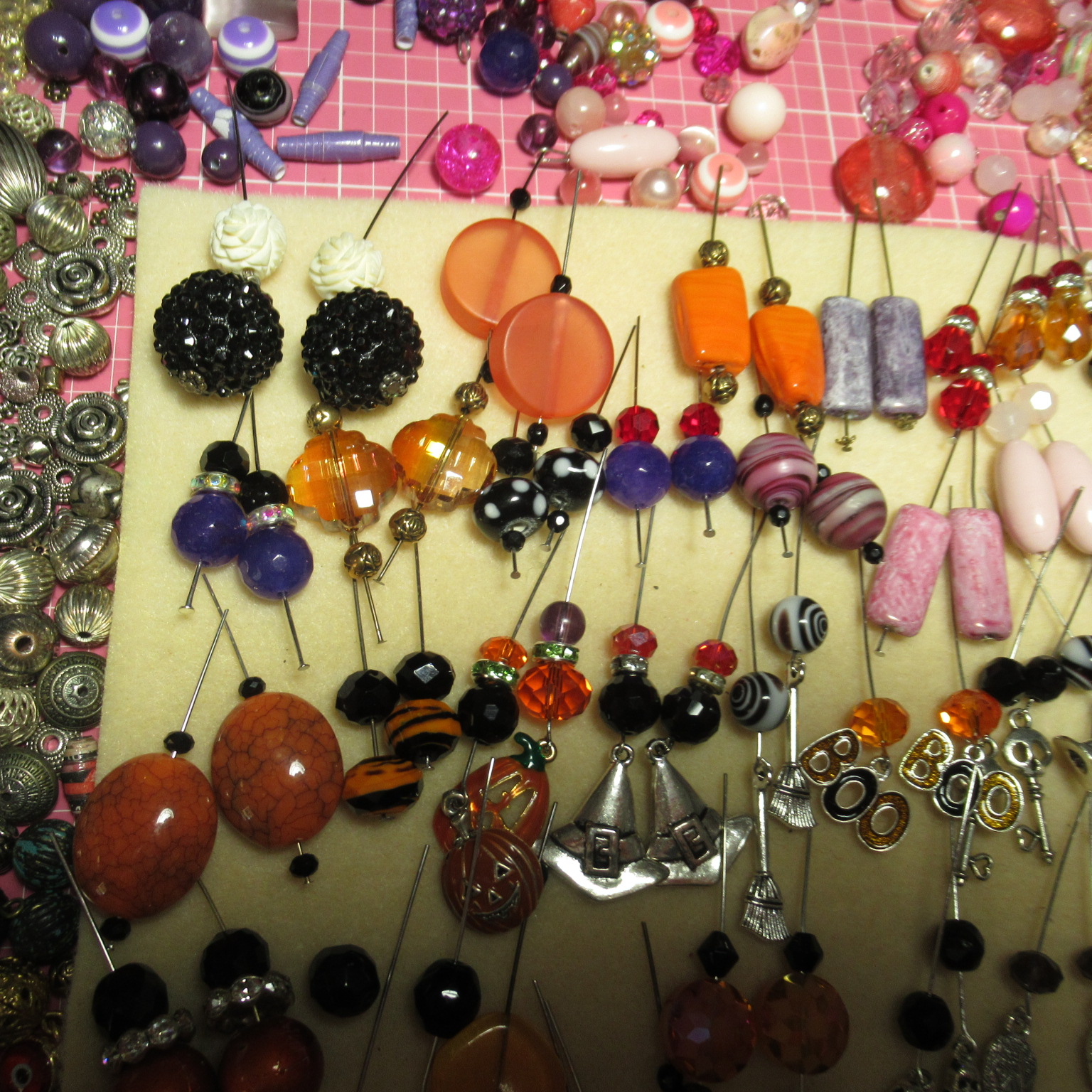 Once I have everything the way I want them I will then loop them all. In these pictures there are still a few I have to finish, but I need to find specific beads for those. Once I am done, I will loop every single pair
