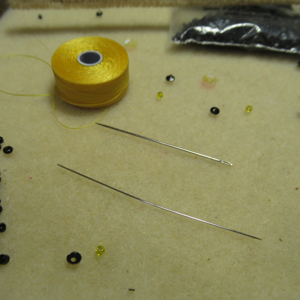 I used beading thread which comes in all colors and I talk about it in the video, and beading needles which are thinner to get through the seed beads. I also use a normal needle to tie off the back as it is easier to go through the fabric over and over with a shorter needle, explain that in the video as well as in the actual video tutorials posted in the description box of this video.