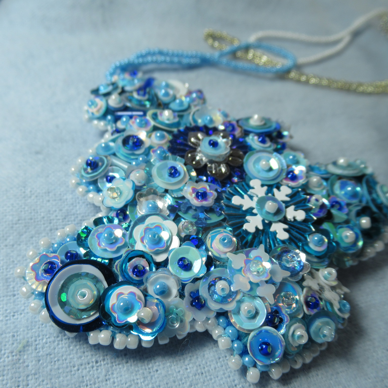 First I created a nice size, chinet platter of mixed blue, white and silver sequins. I plan to do a lot of stacked sequins and having this mix all together really helps. I have a baggie of just blues and a baggie of just whites mixed for the ones I make that I need to seperate, like the stocking pictured in this post.