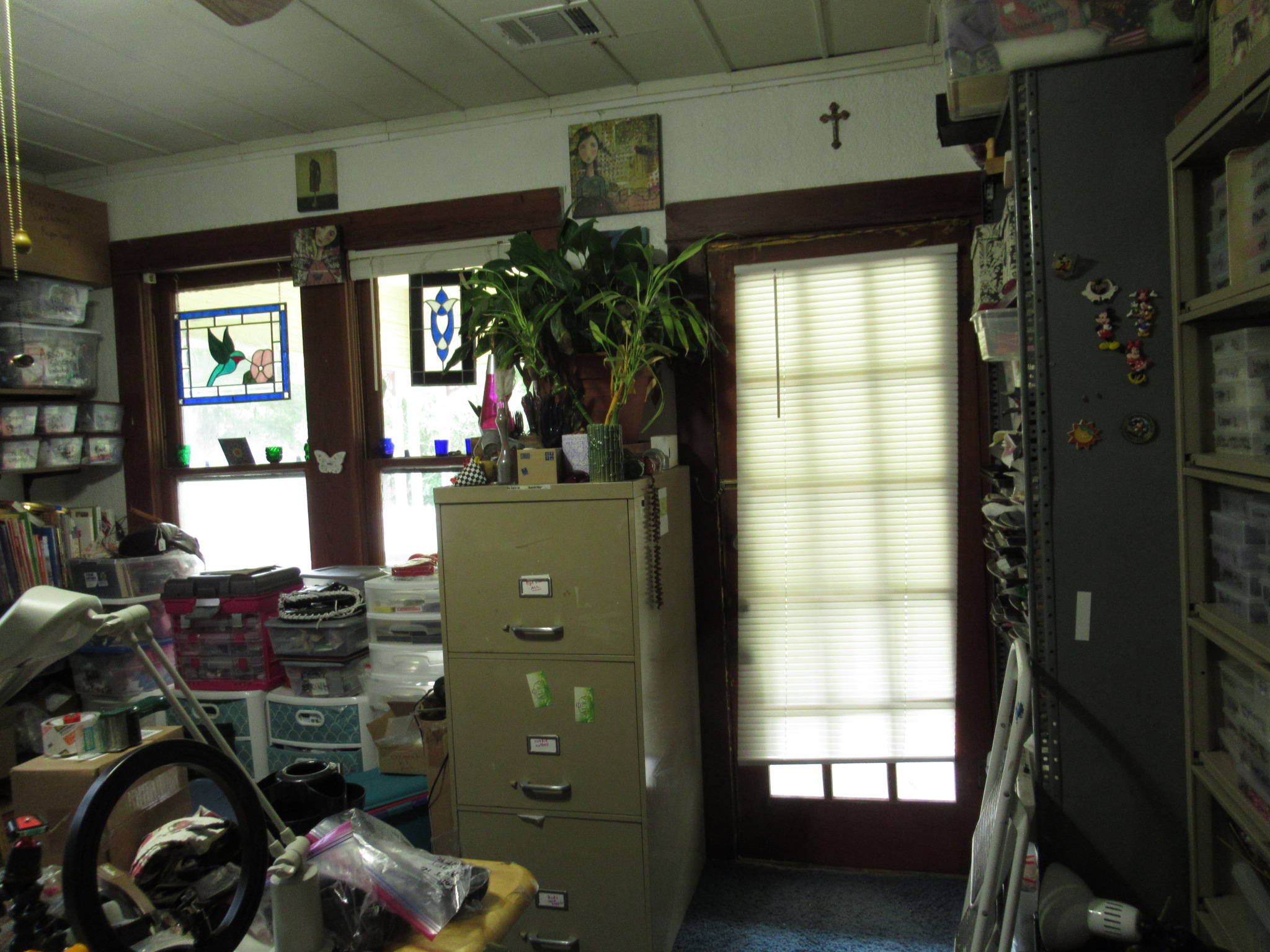 I have a beautiful studio. A front bedroom in our almost 100 year old house. I enjoy the windows and bright light and the pretty views out all of the windows. I would have loved to show you a picture of my work table empty, but it is almost always a mess with projects I am working on. The room is far from perfect, it is an old house and needs a lot of work, but it is perfect studio for me !!